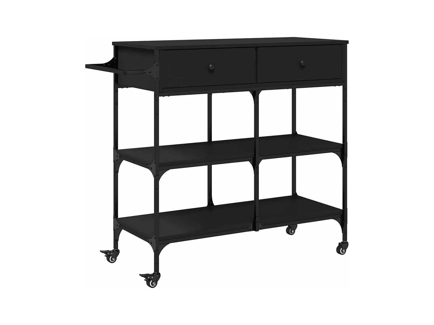 Carrito de cocina de madera de ingeniería negro 81,5x41x92,5 cm