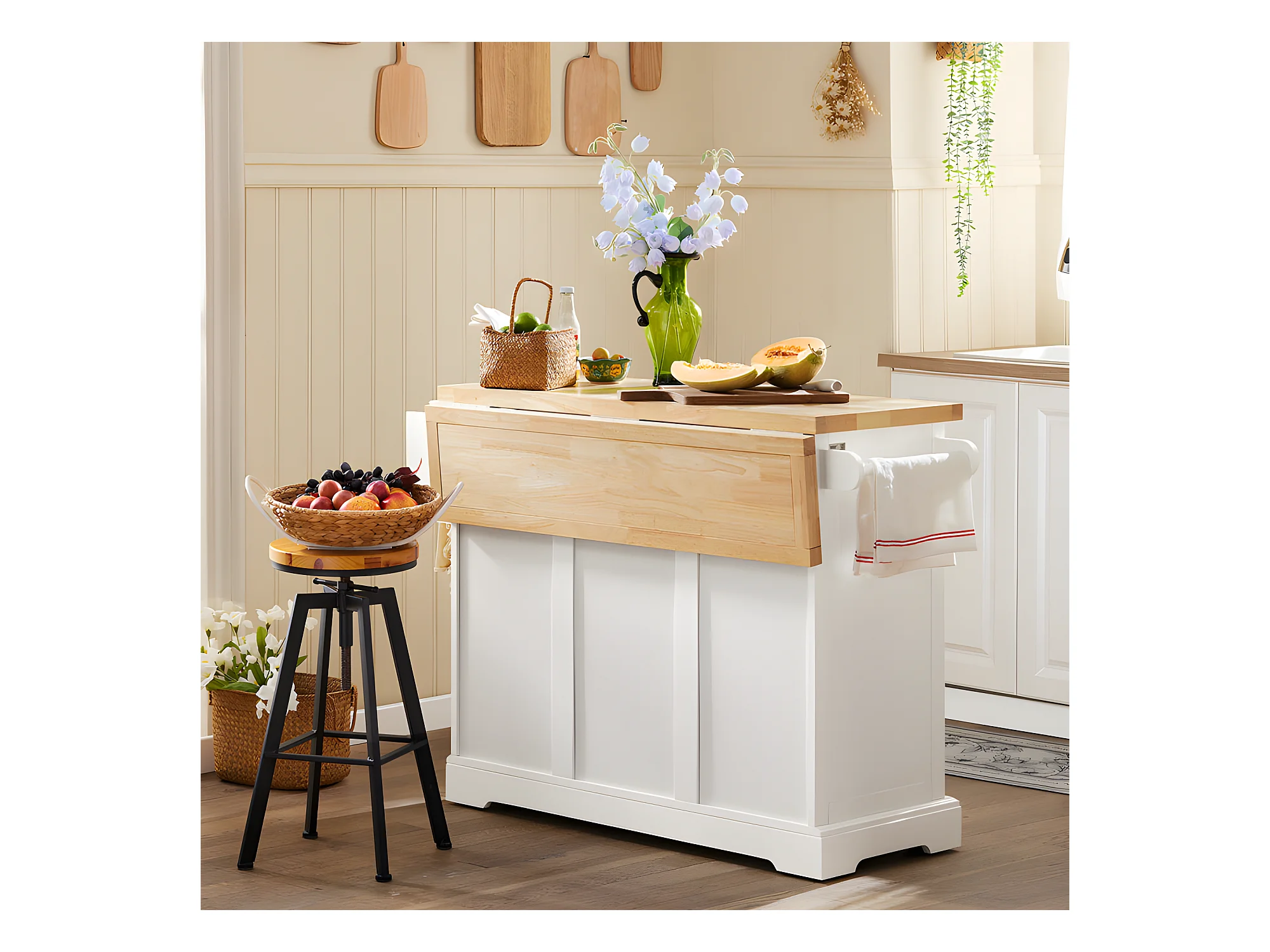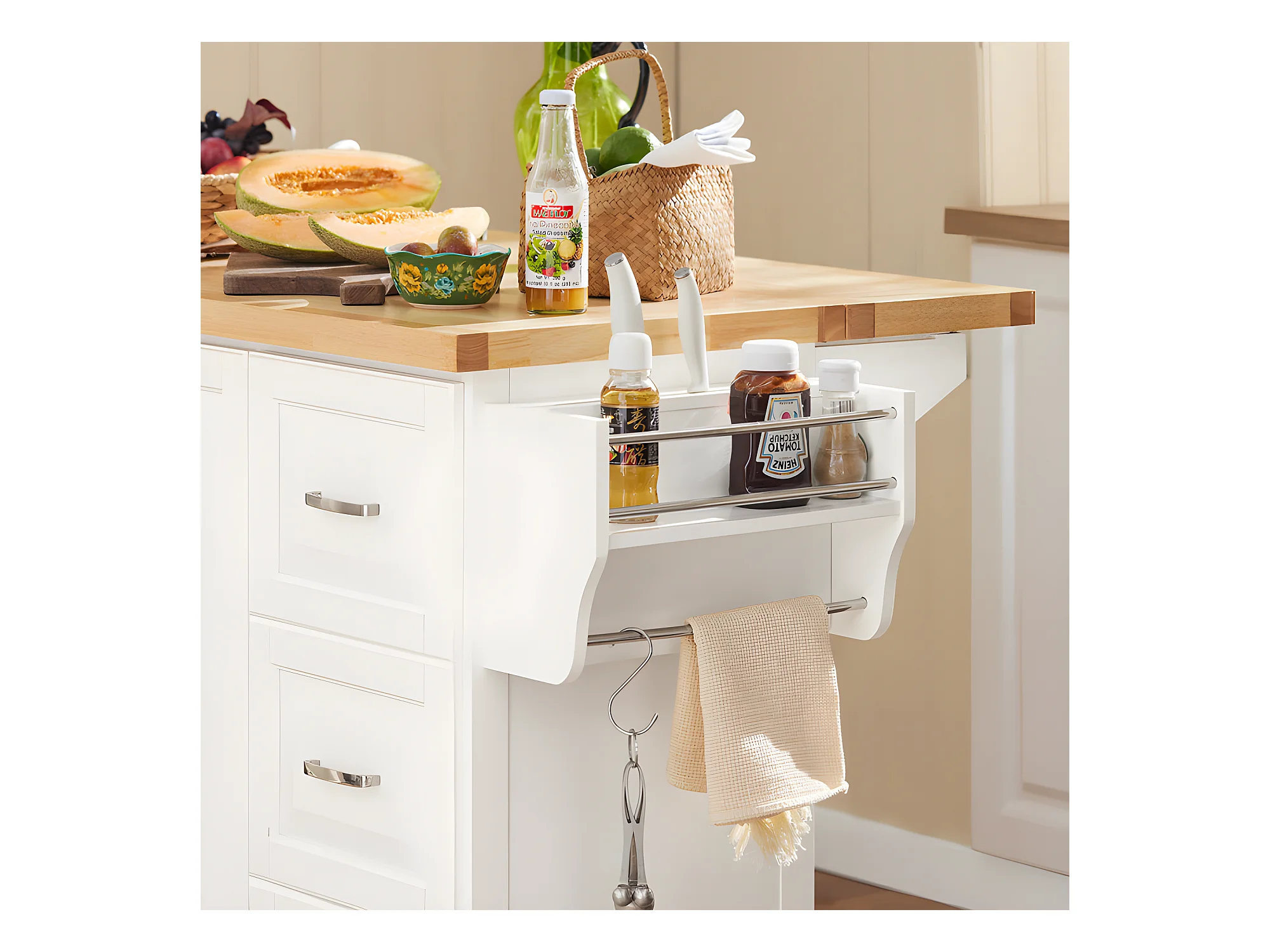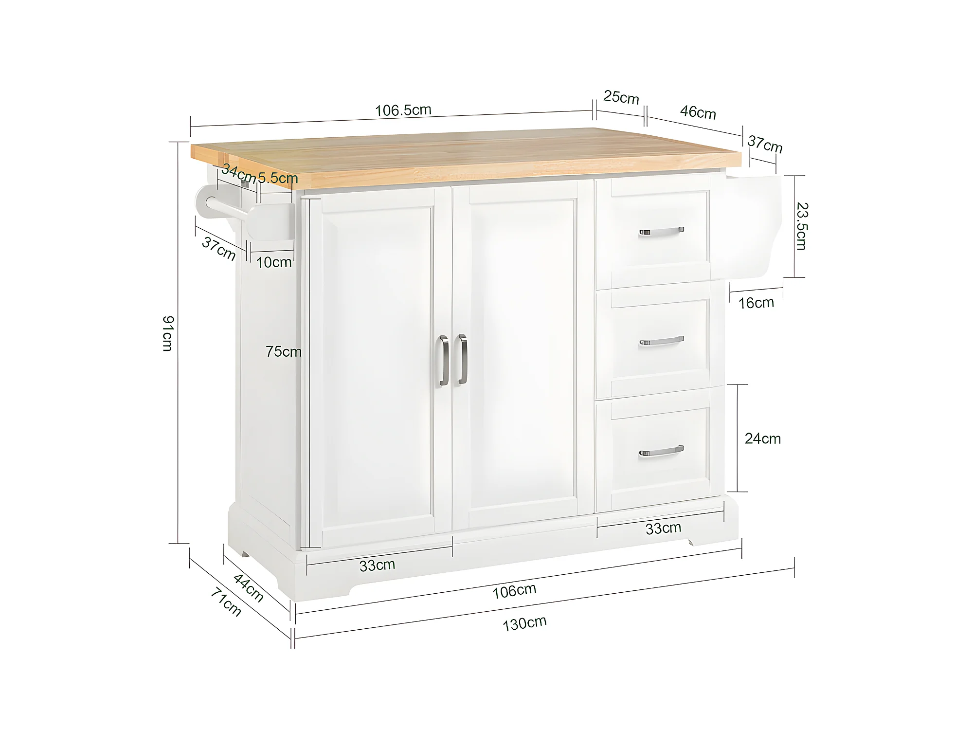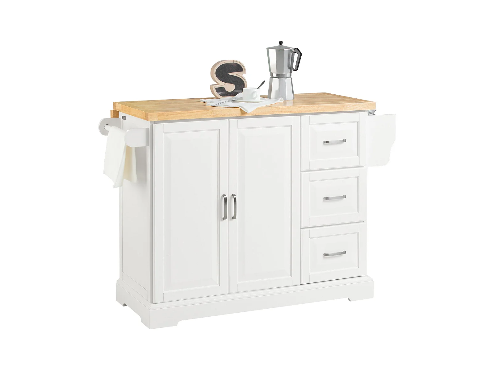 Carrito de cocina 129x46x91,5cm, carrito de comedor, encimera plegable, mueble de almacenaje, color blanco