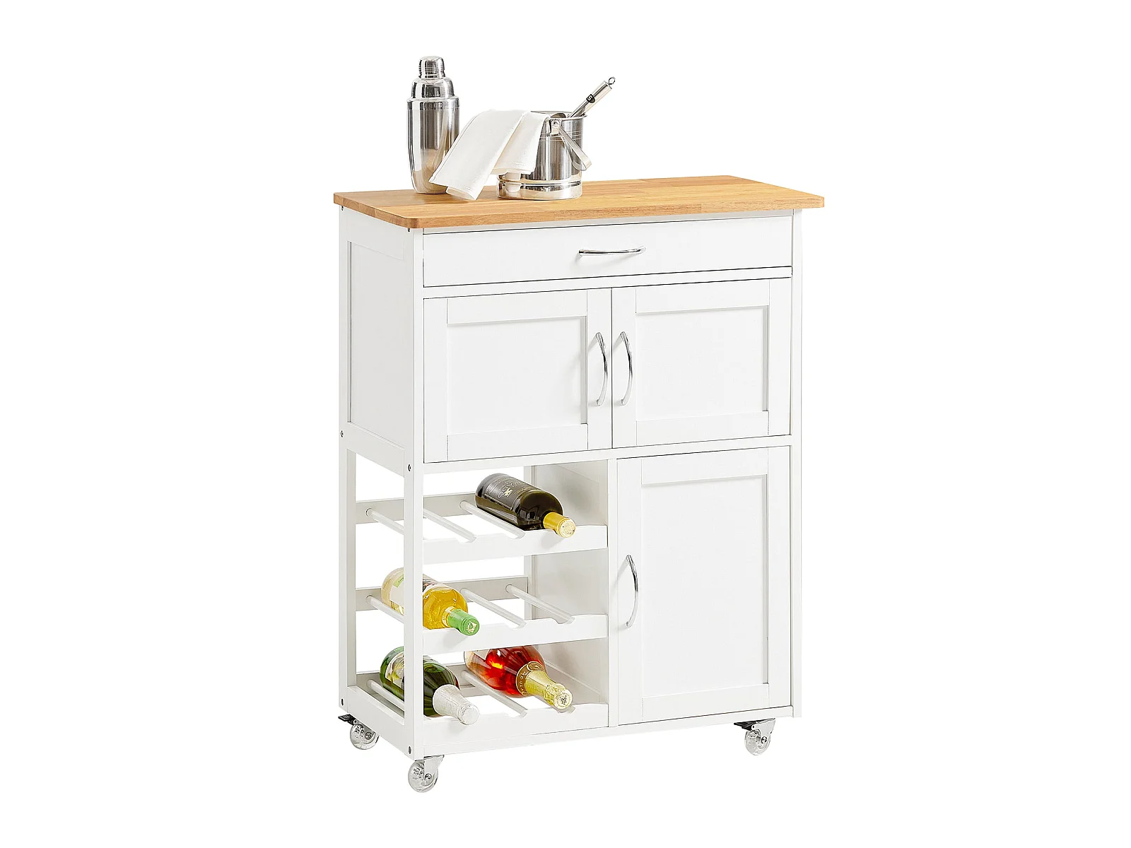 Carrito de Cocina, Estantería de Cocina, Aparador con Ruedas, H91cm x L130cm x P71,Blanco Madera de Caucho FKW41-WN SoBuy ES
