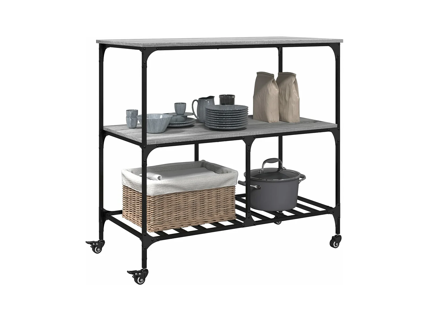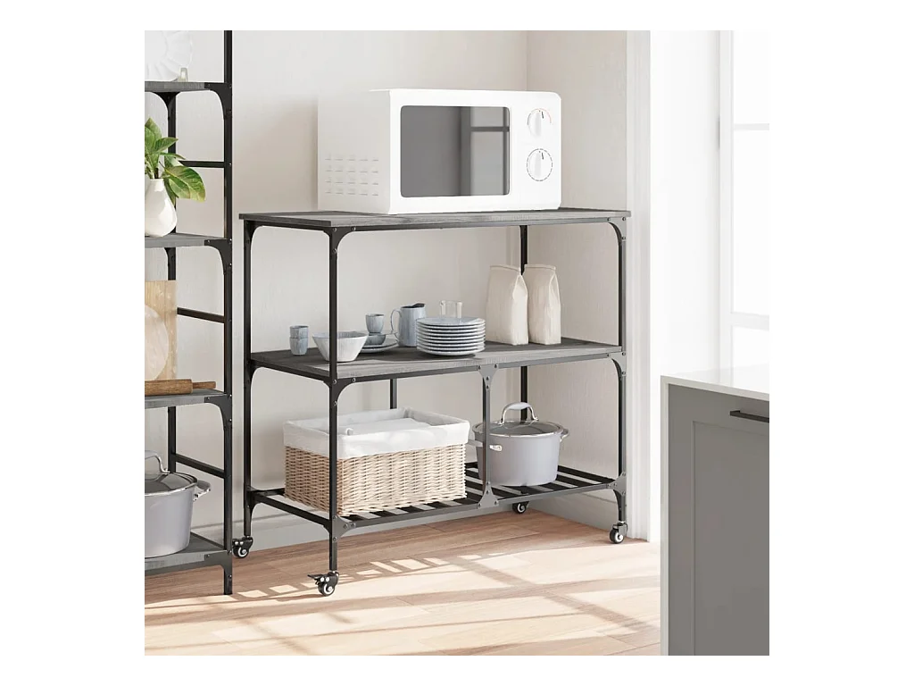Carrito de cocina madera ingeniería gris Sonoma 102x50x95 cm