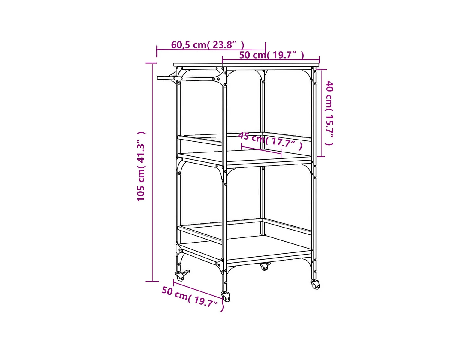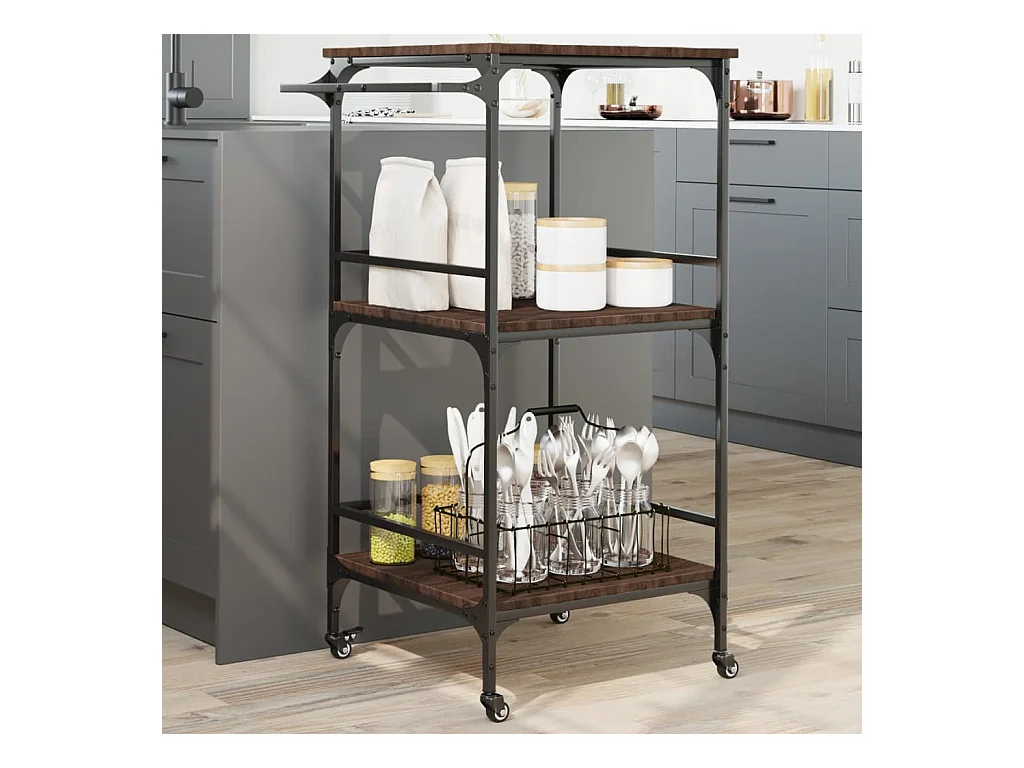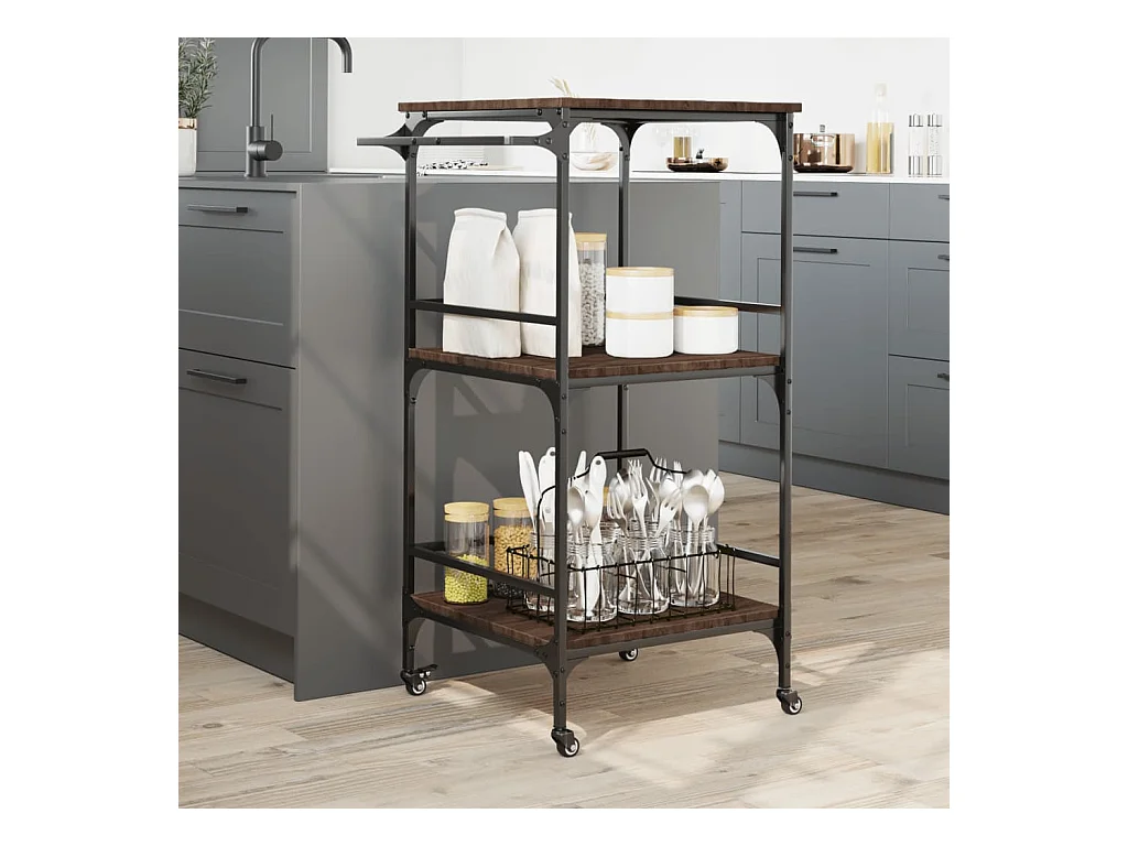 Carrito de cocina madera ingeniería marrón roble 60x41x80,5 cm