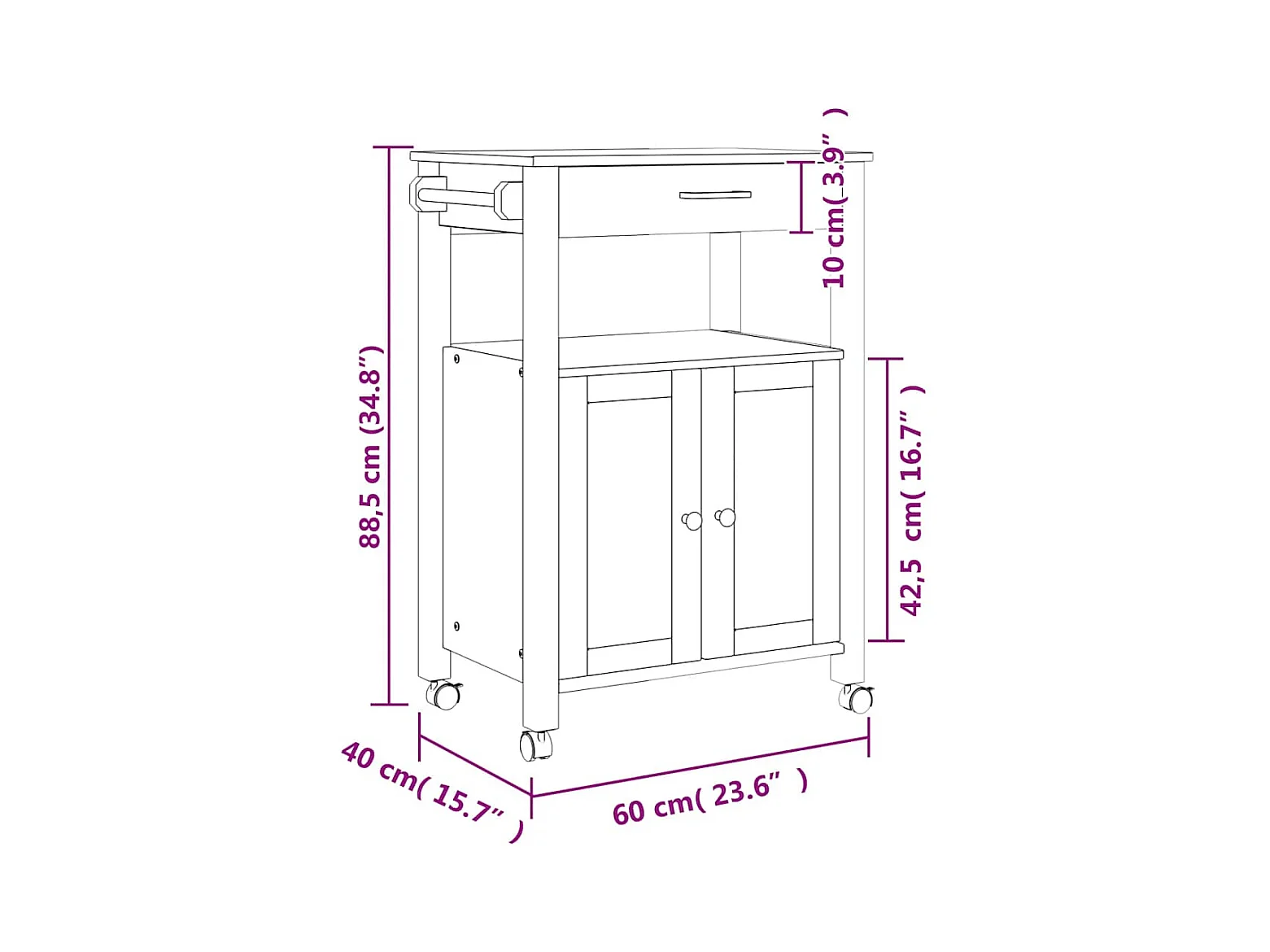 Carrito de cocina MONZA madera maciza de pino 60x40x90 cm