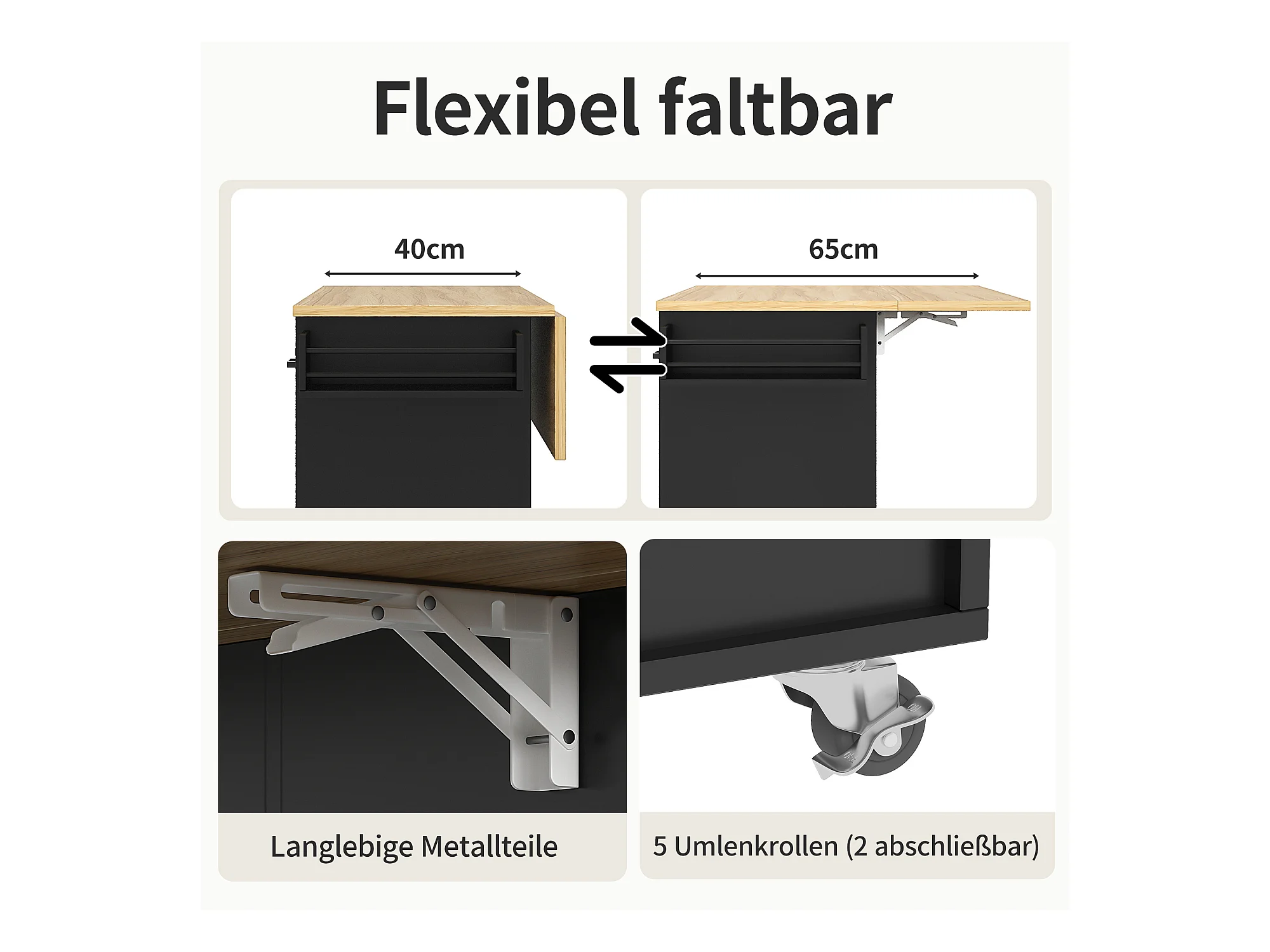 Carrito de Cocina con Piso de Acero,con Tablero Extensible,L115 x P46 x H92cm Negro FKW71-SCH SoBuy ES
