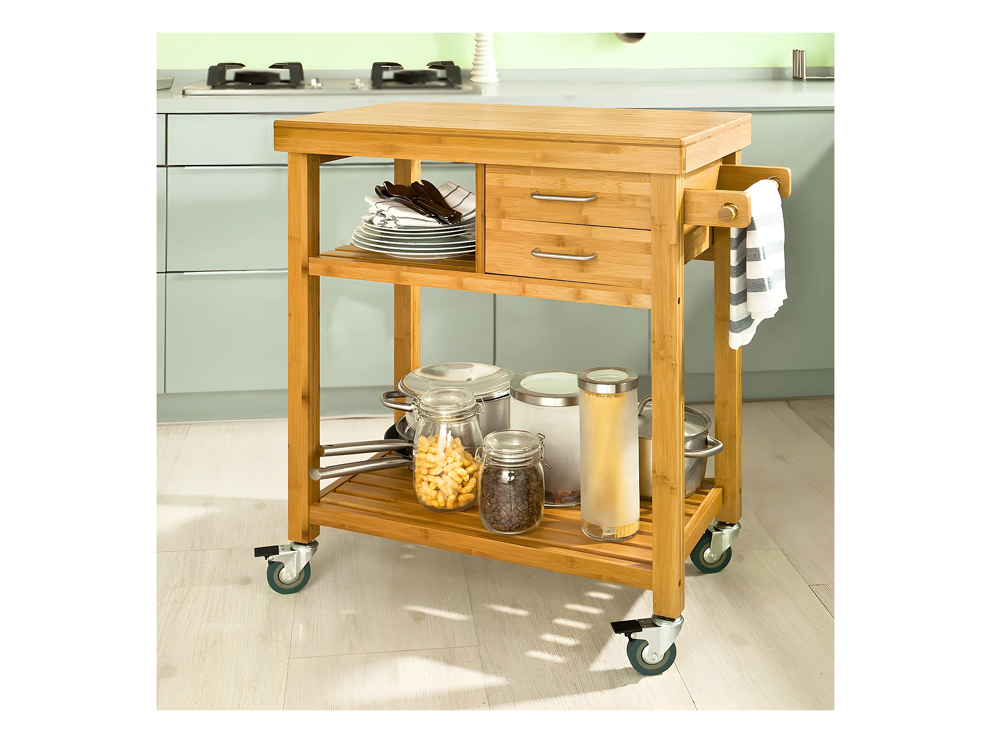 Luxus-Carrito de cocina con piso de acero, estantería de cocina,carrito de servir de bambú de alta calidad L66xP45xA90cm,FKW13-N SoBuy ES