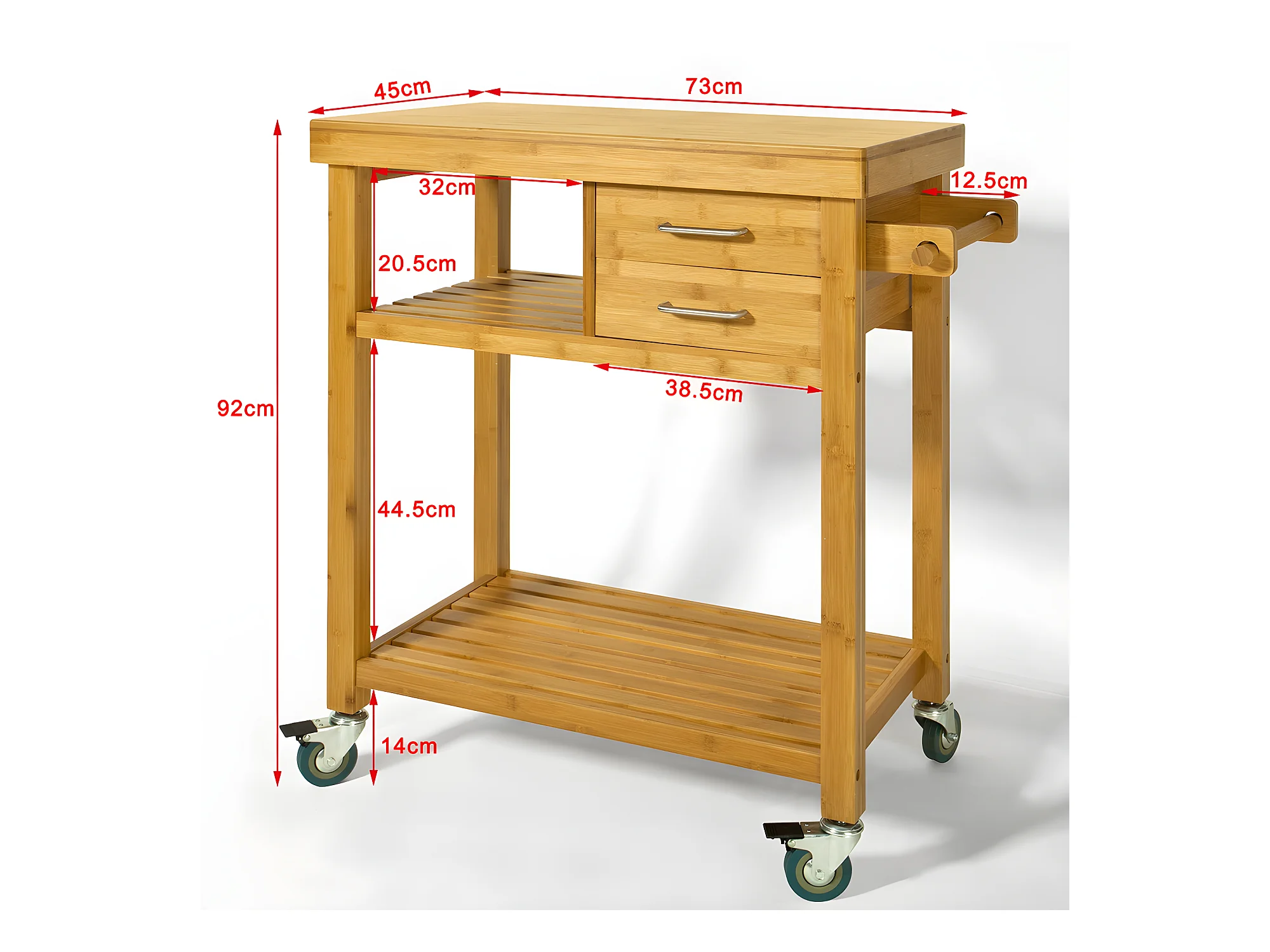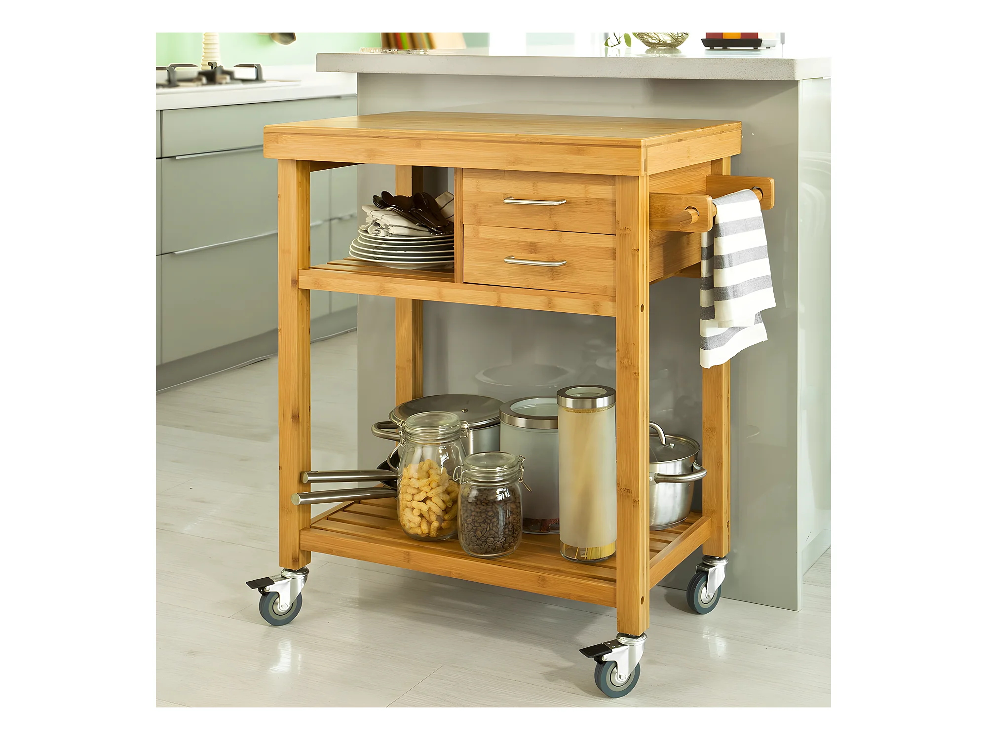 Carrito de Bambú con Ruedas 75x40x15cm 7house
