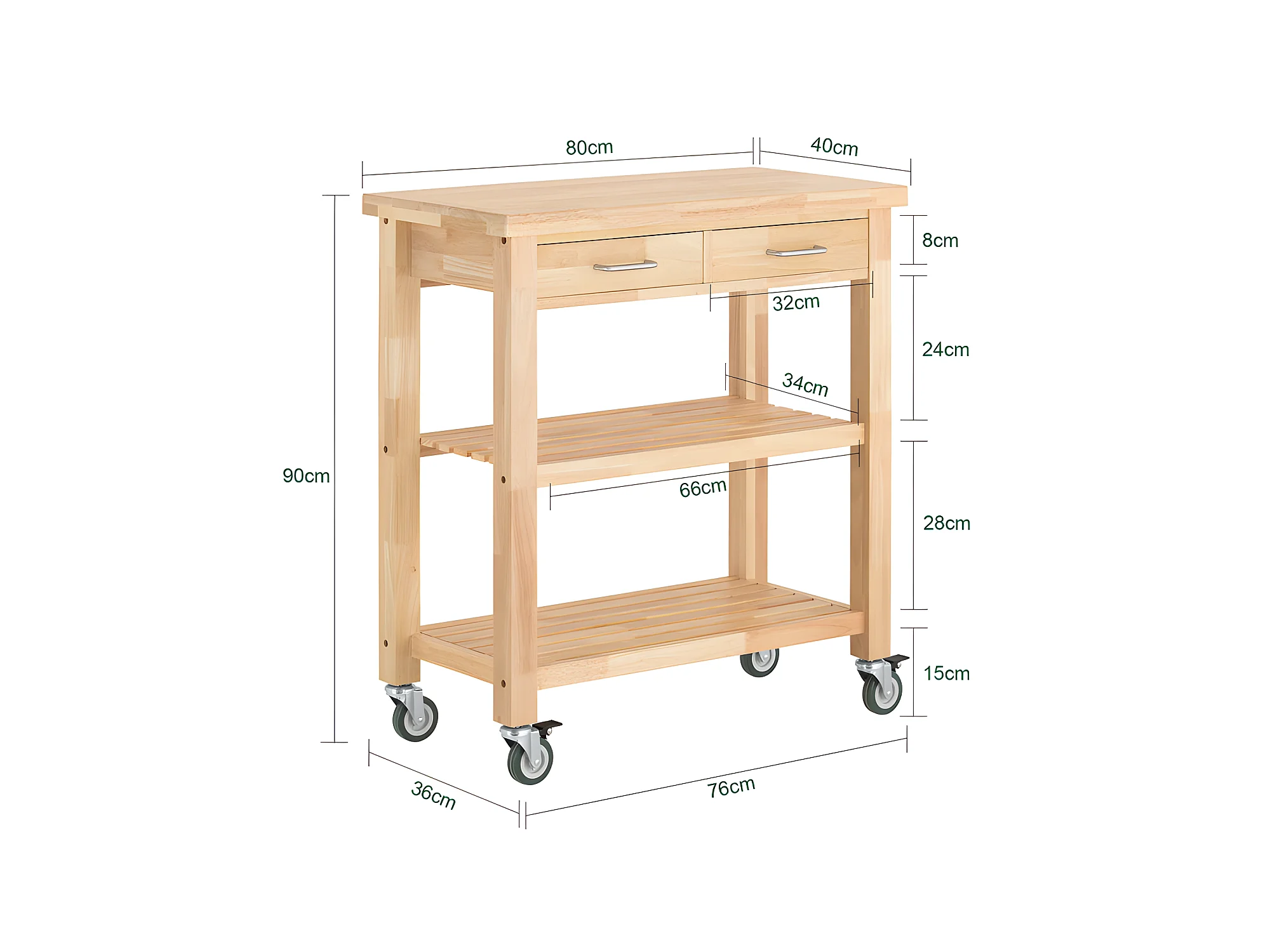 Carrito de server, Estantería de cocina, Carro de cocina,naturaleza 80 x 40 x 90cm FKW24-N SoBuy ES