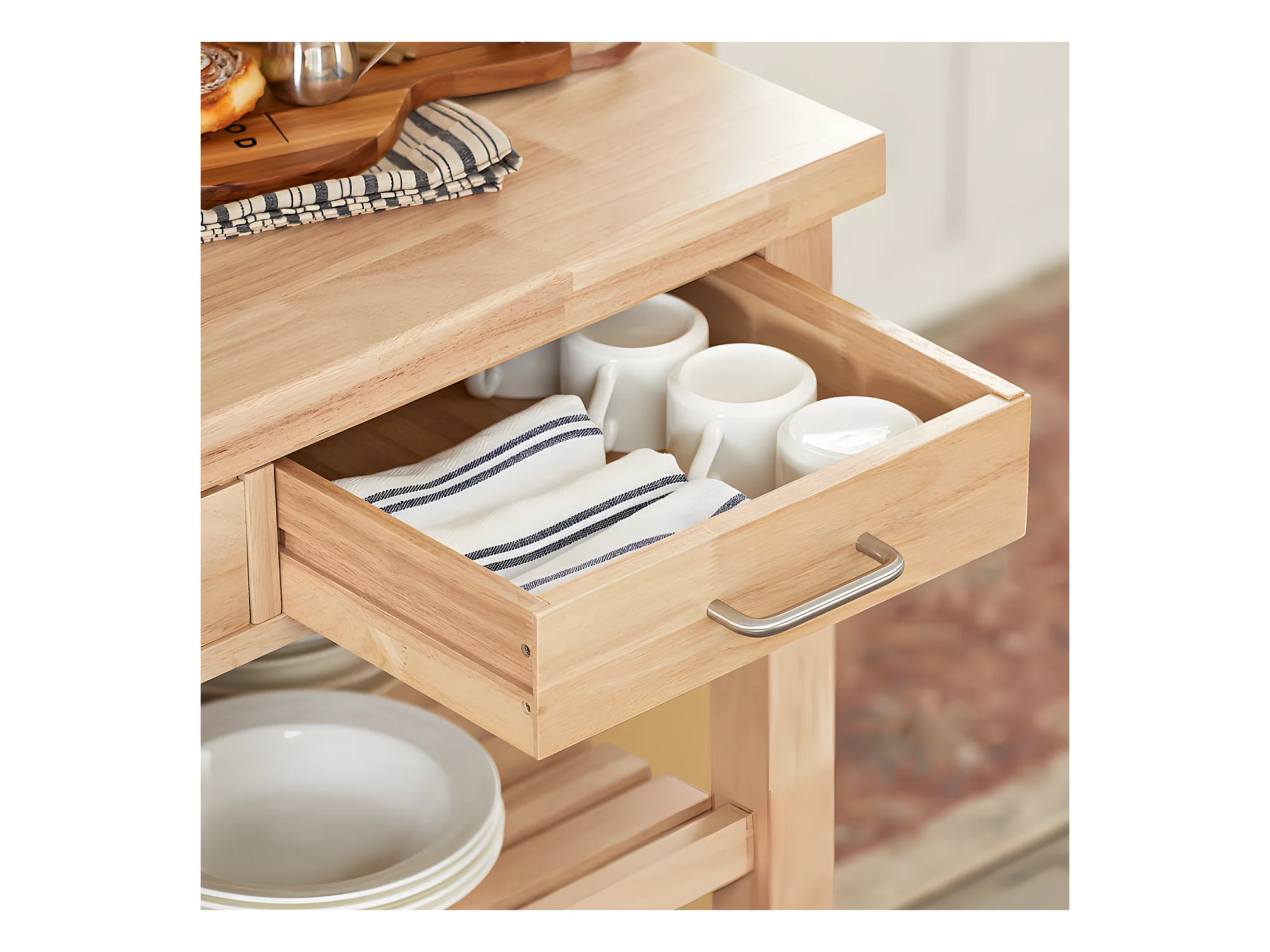 Carrito de Cocina con Piso de Acero, Estantería de Cocina, Carrito de Servir de Bambú, FKW40-N SoBuy ES