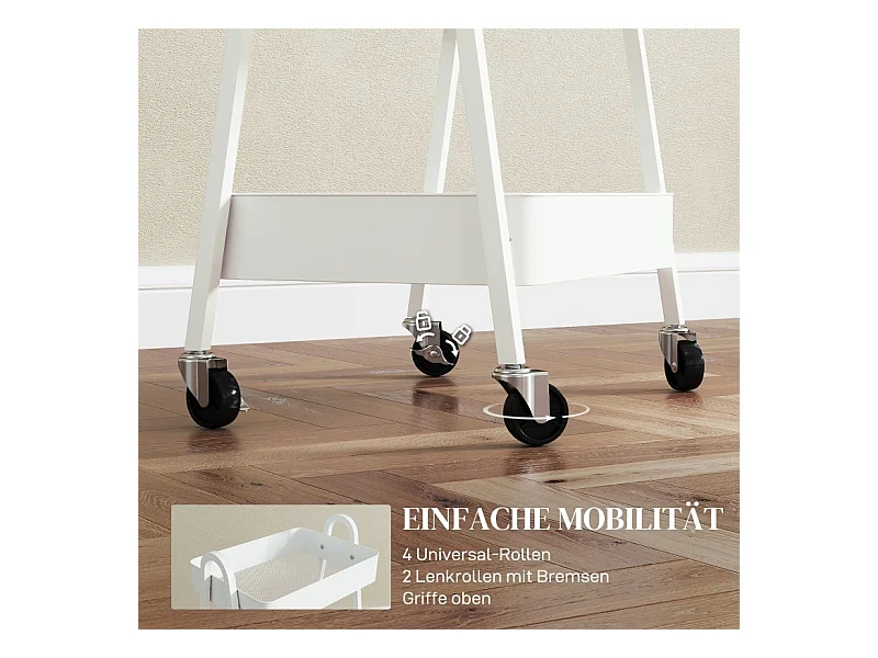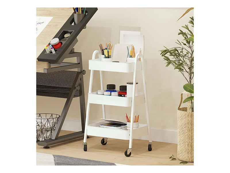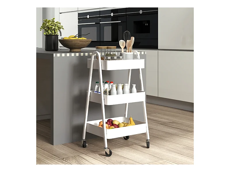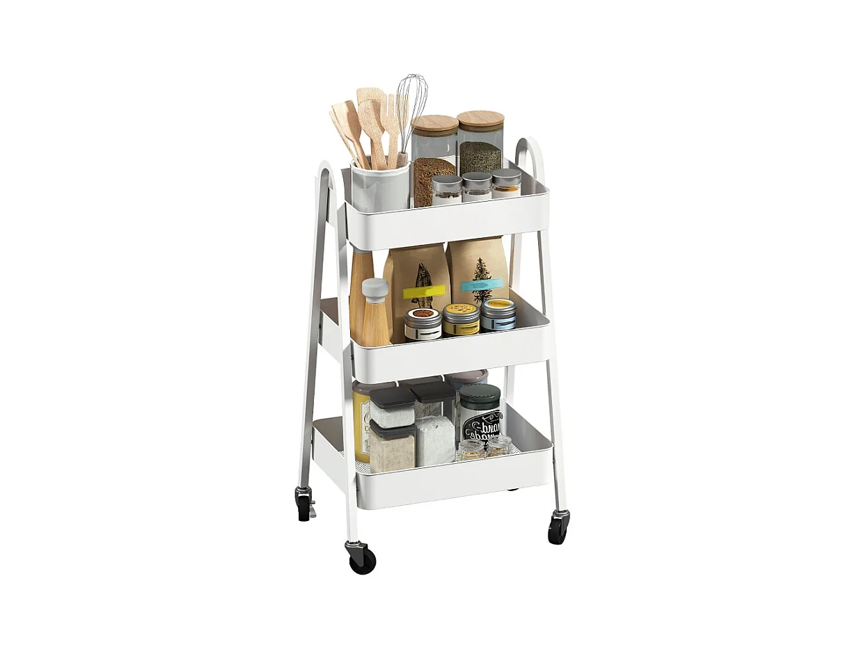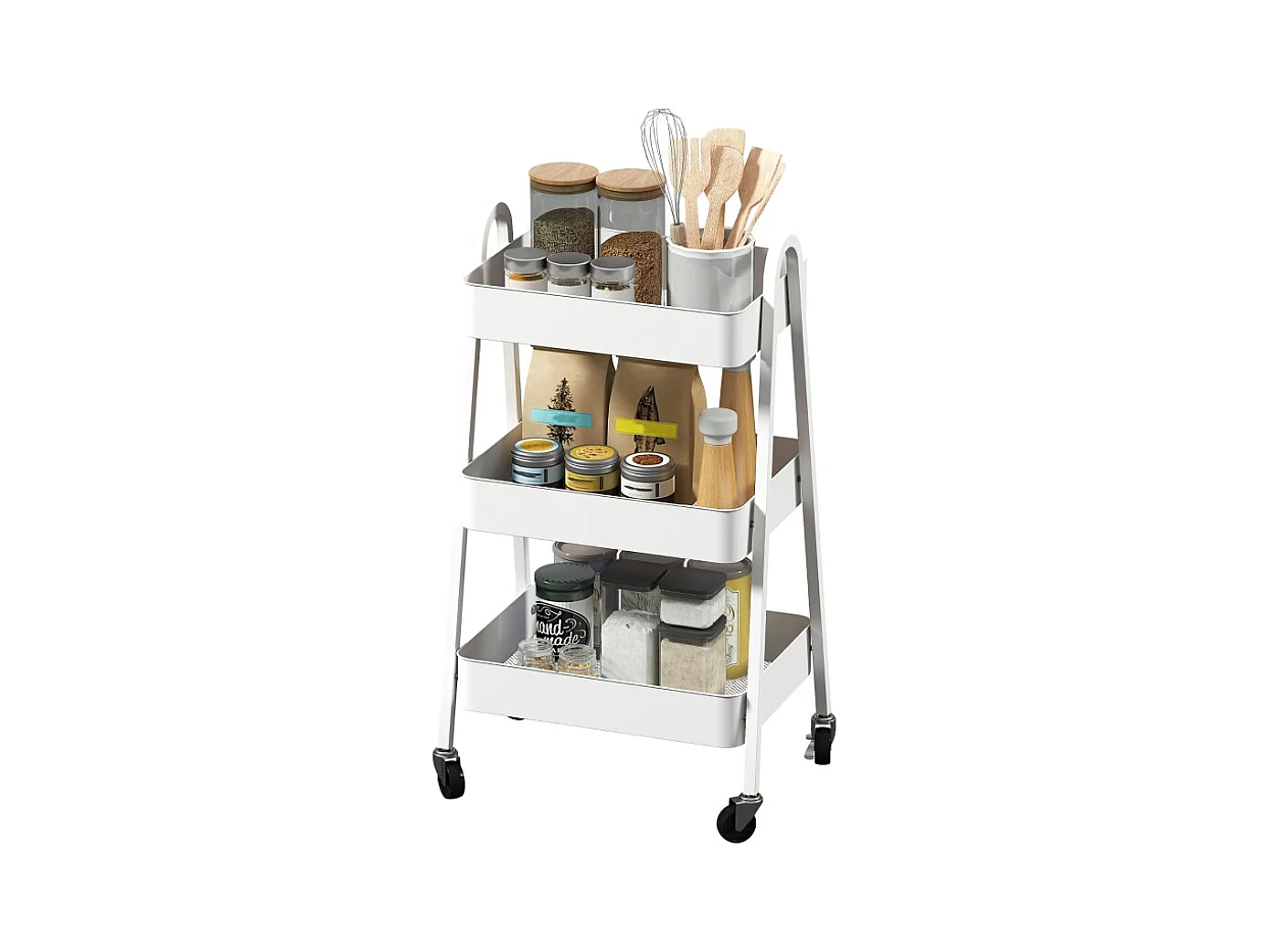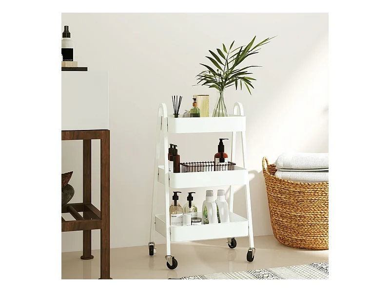 Carrito de servicio con 3 estantes, ruedas, metal, blanco (42,4x29,8x74,5 cm)