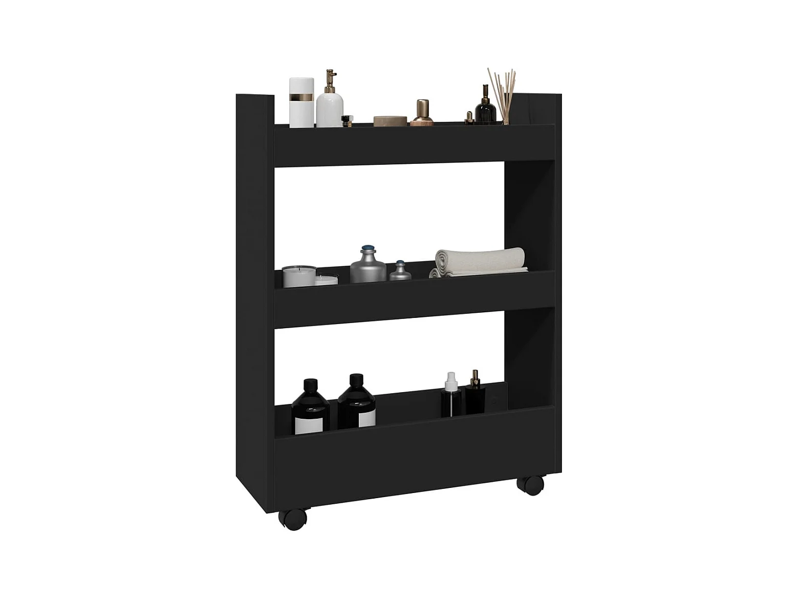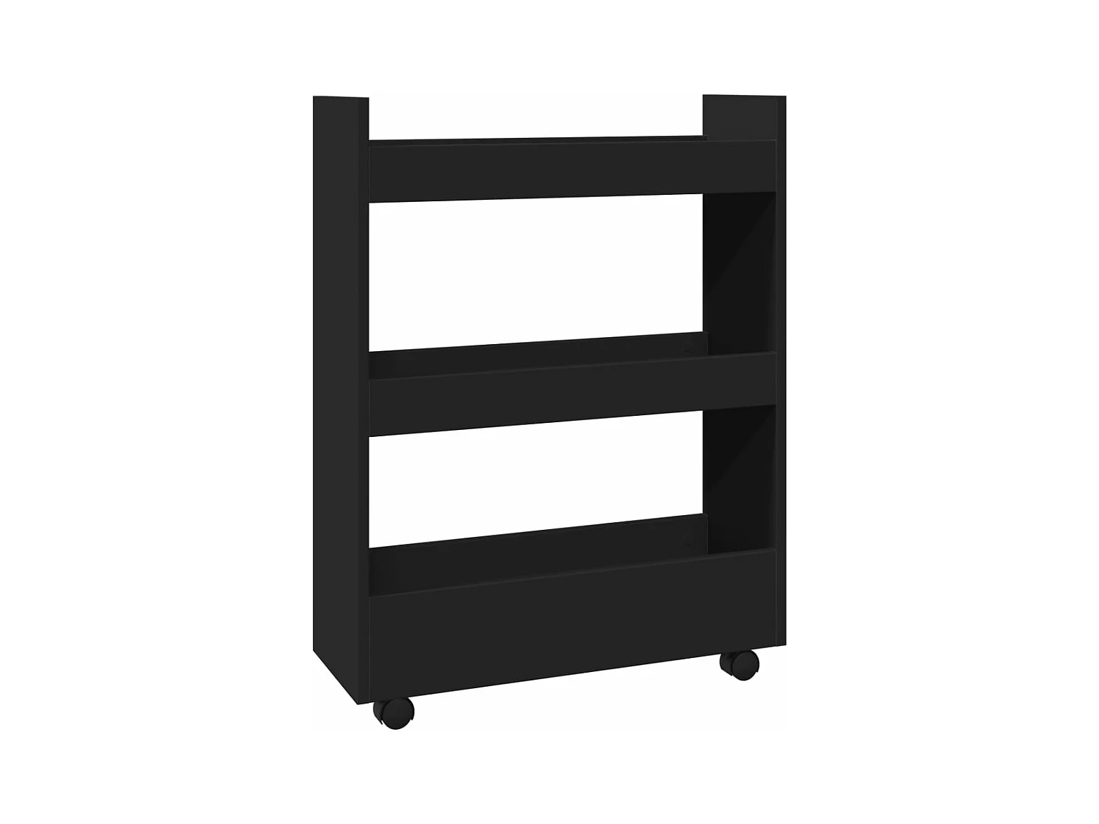 Carro de almacenaje estrecho 3 niveles madera ingeniería negro