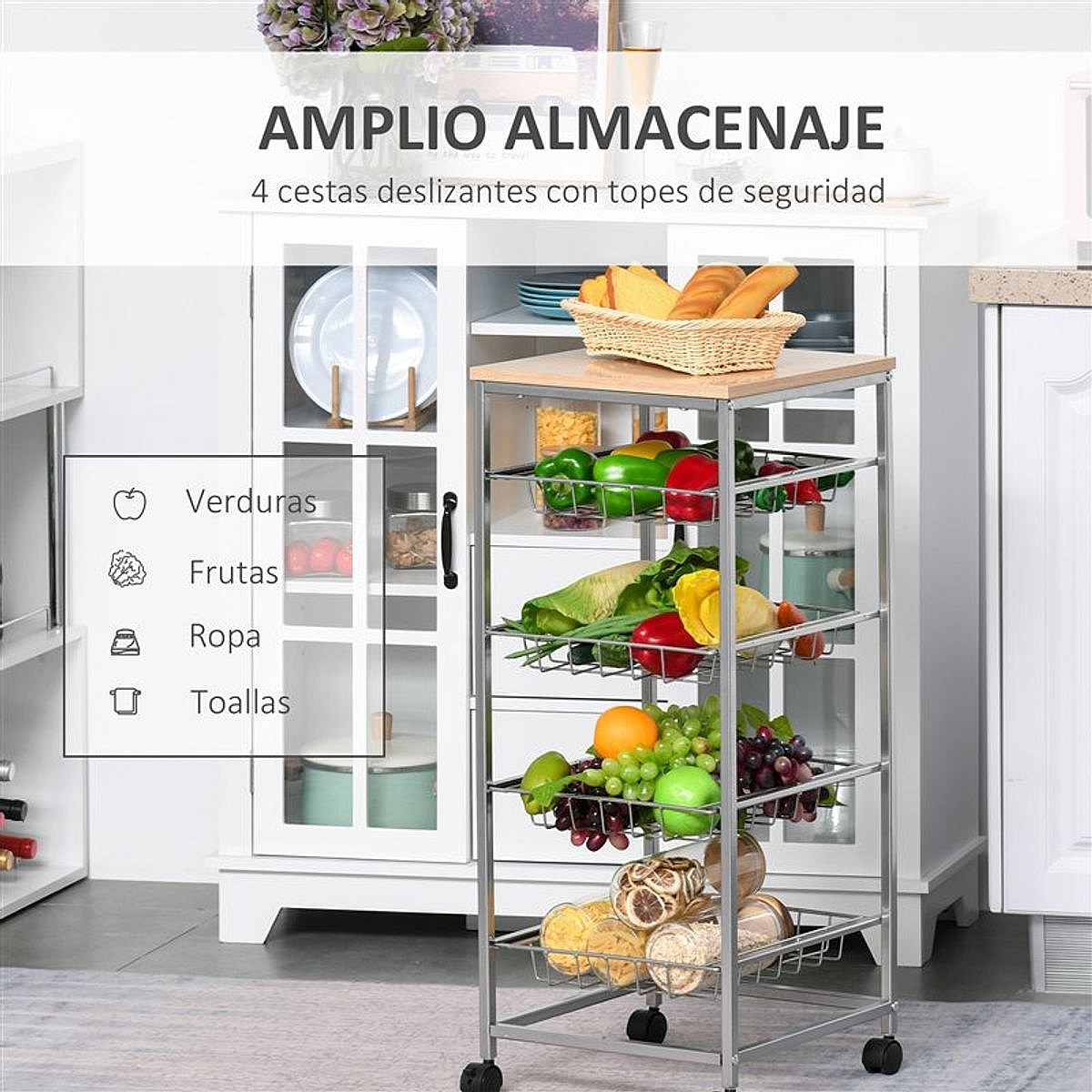 Carro de cocina plateado 85x45x90cm HOMCOM