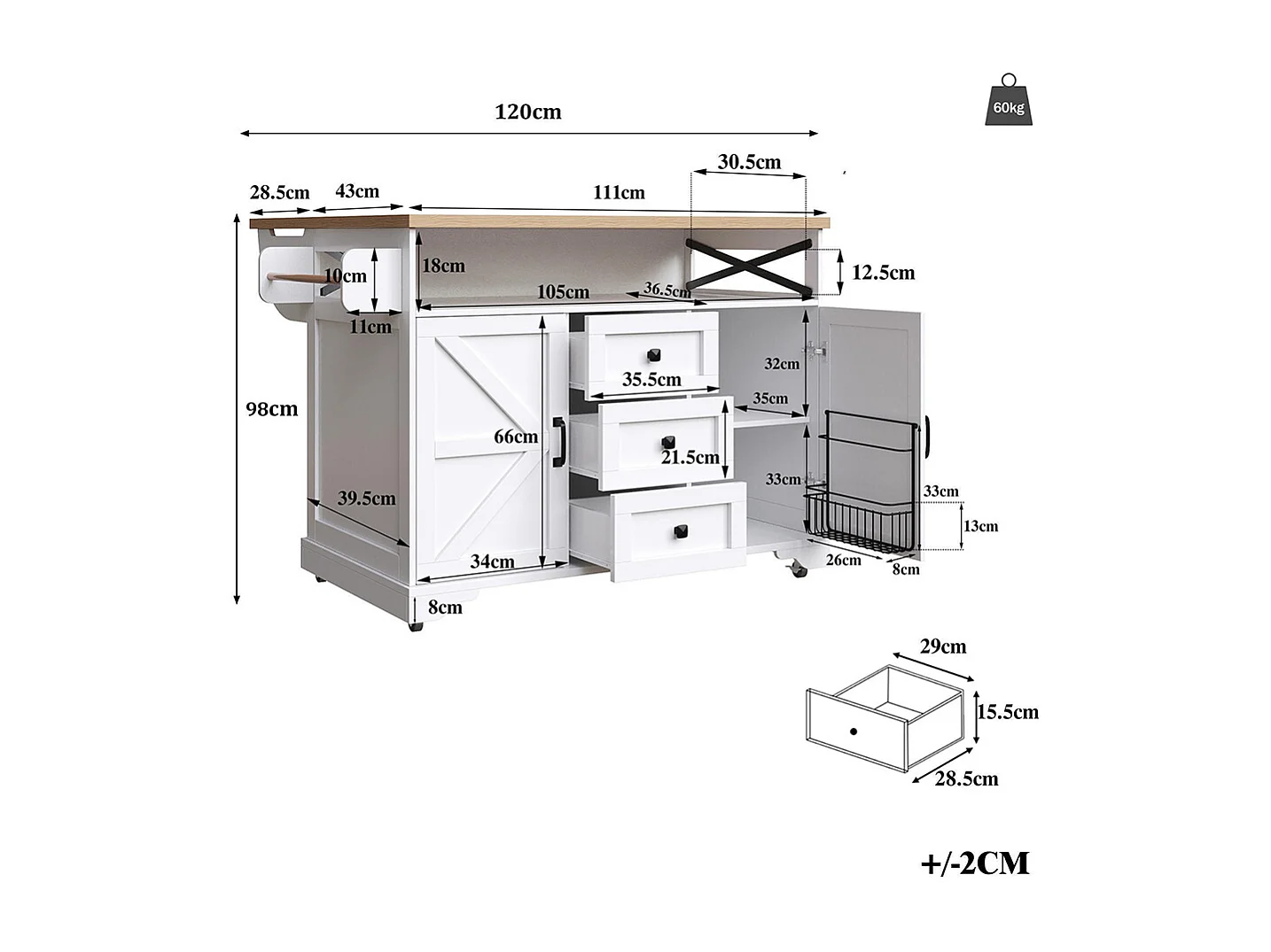 Carro de cocina con mesa plegable e iluminación LED, soporte para aperitivos, mesa de comedor con espacio de almacenamiento, blanco