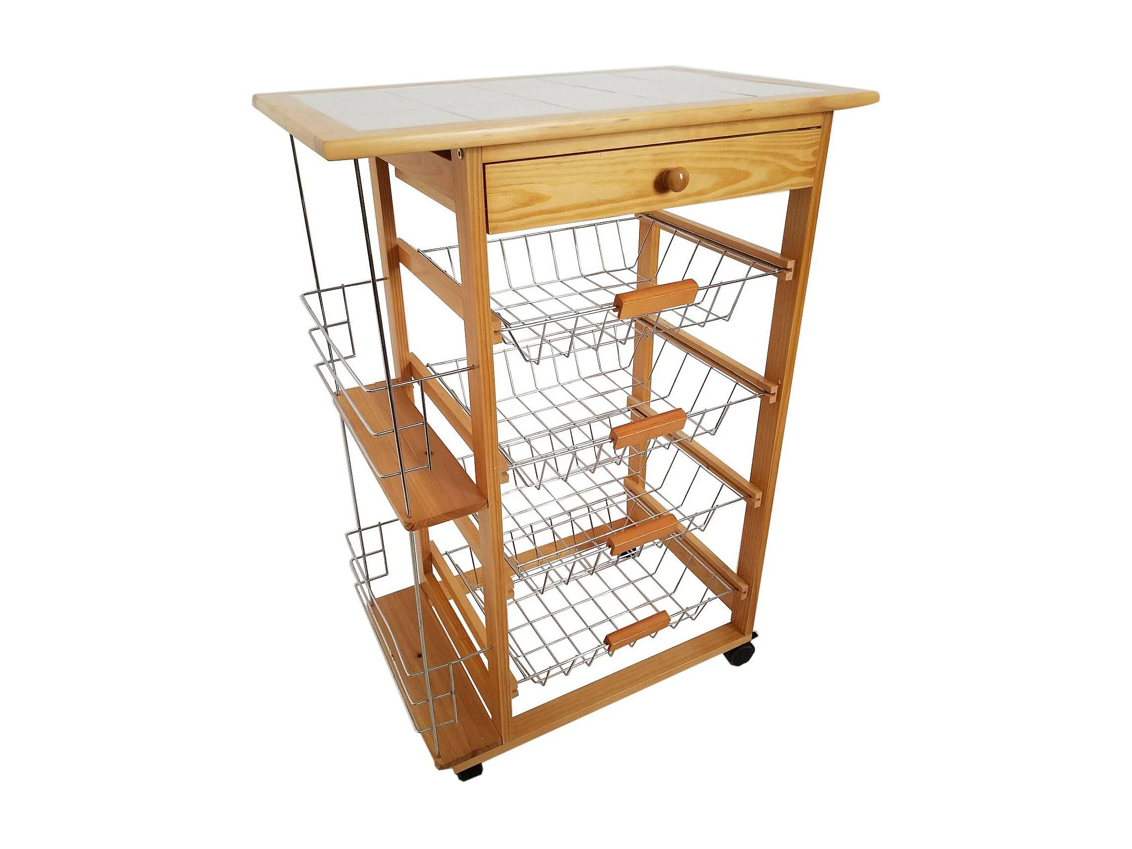 Meyvaser - Carro de cocina con ruedas doble con 4 cestas 4 baldas y 2 Cajones con ruedas Color miel 85 x 67 x 37 Cm