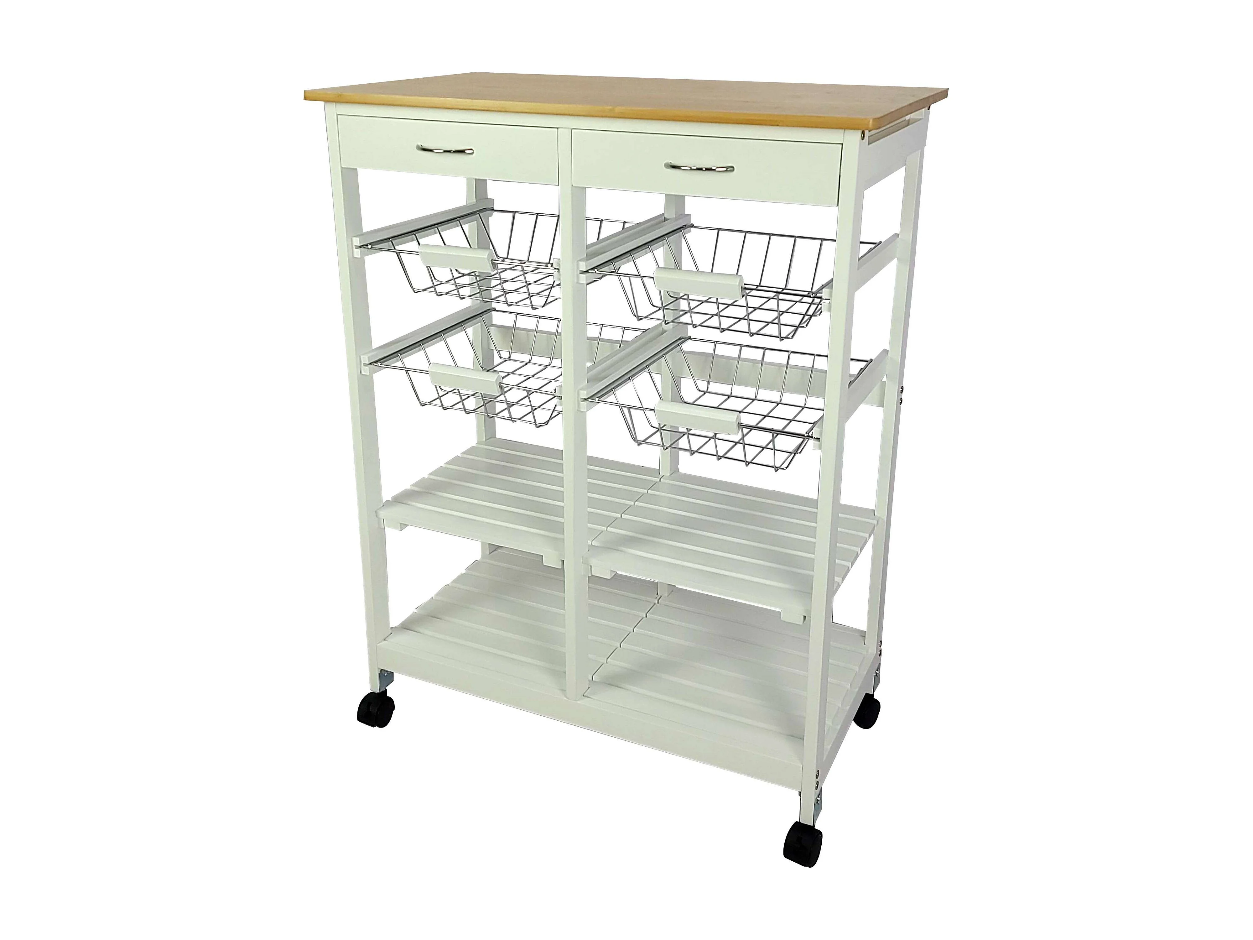 Meyvaser - Carro de Cocina de Cocina con Ruedas con 4 cestas extraíbles 4 bandejas y 2 cajones Oporto 8 Color Blanco 87x 67 x 37 Cm