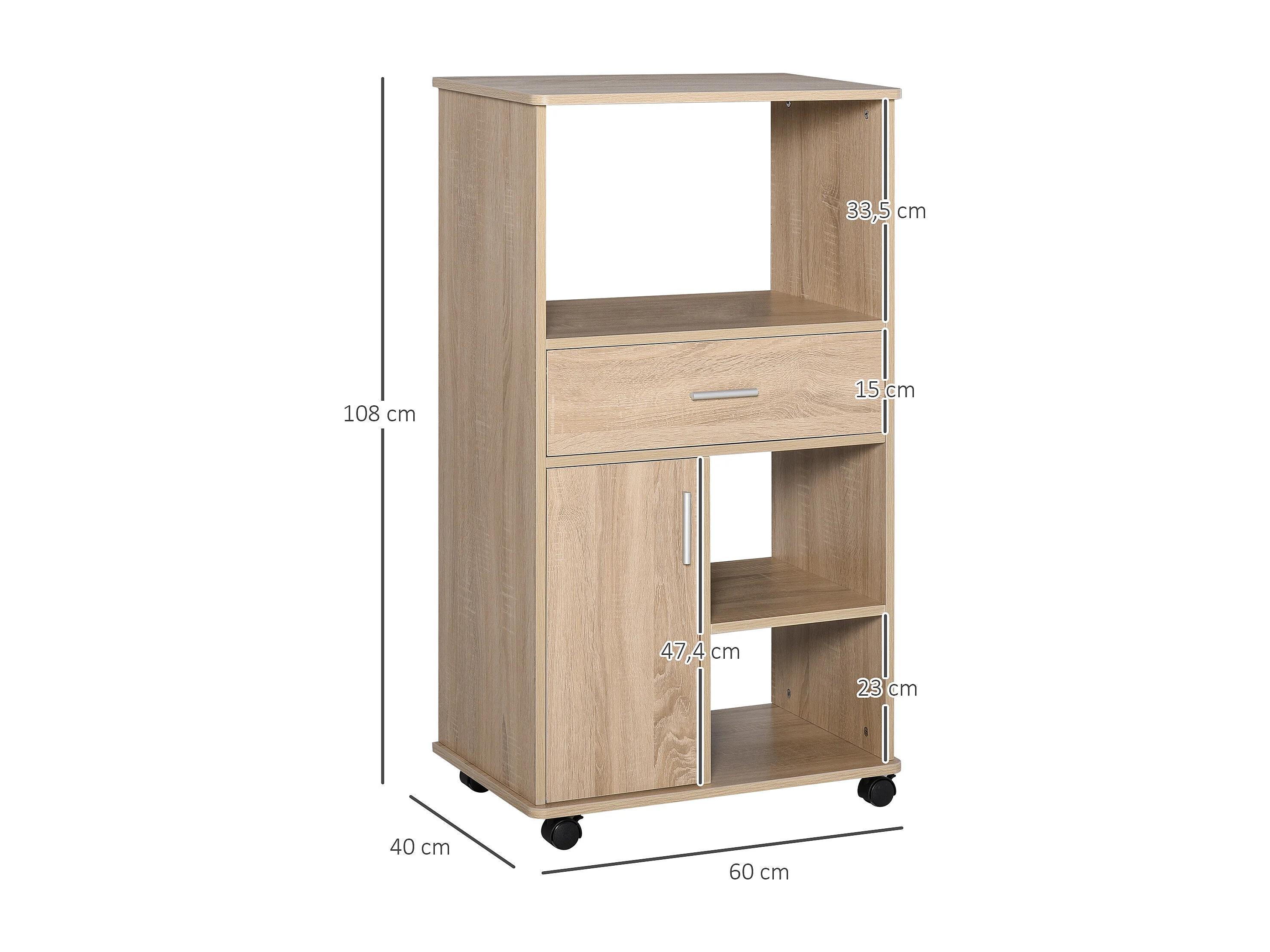 Carro de cocina para microondas roble 60x40x108cm HOMCOM
