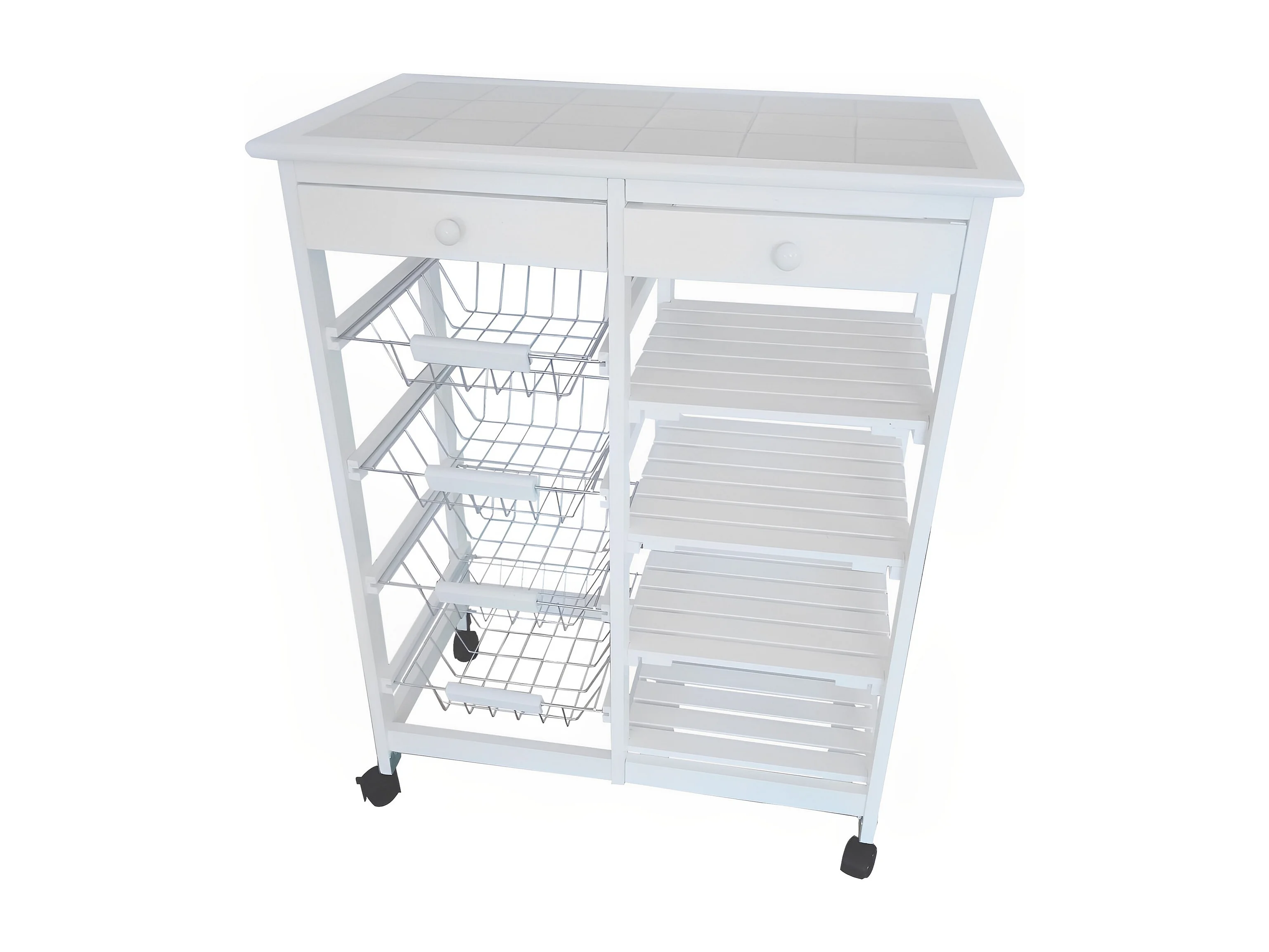 Meyvaser - Carro de cocina verdulero Doble con 4 Cestas 4 Baldas Y 2 Cajones Color Blanco 85 x 67 x 37 Cm