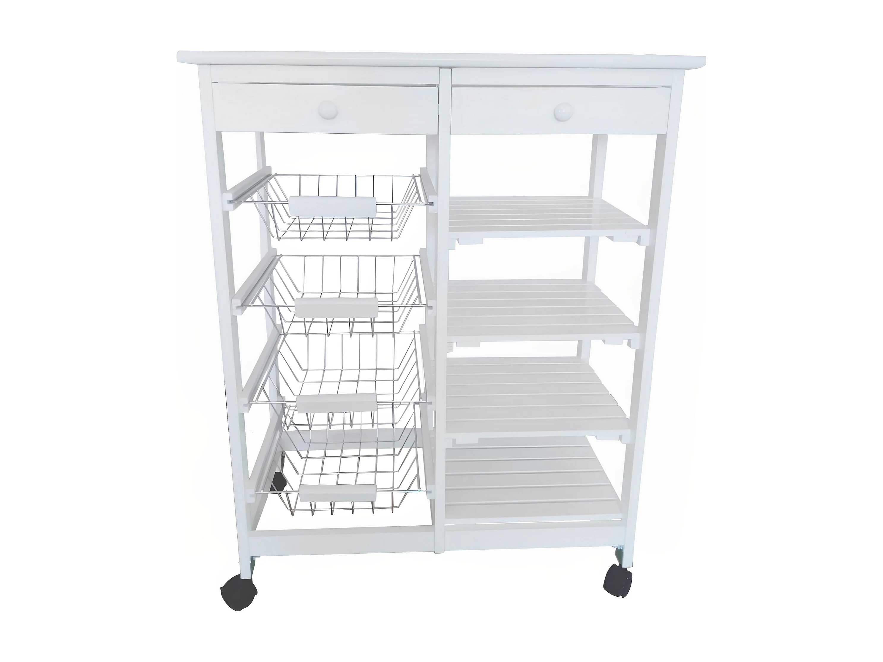 Meyvaser - Carro de Cocina de Cocina con Ruedas con 4 cestas extraíbles 4 bandejas y 2 cajones Oporto 8 Color Blanco 87x 67 x 37 Cm