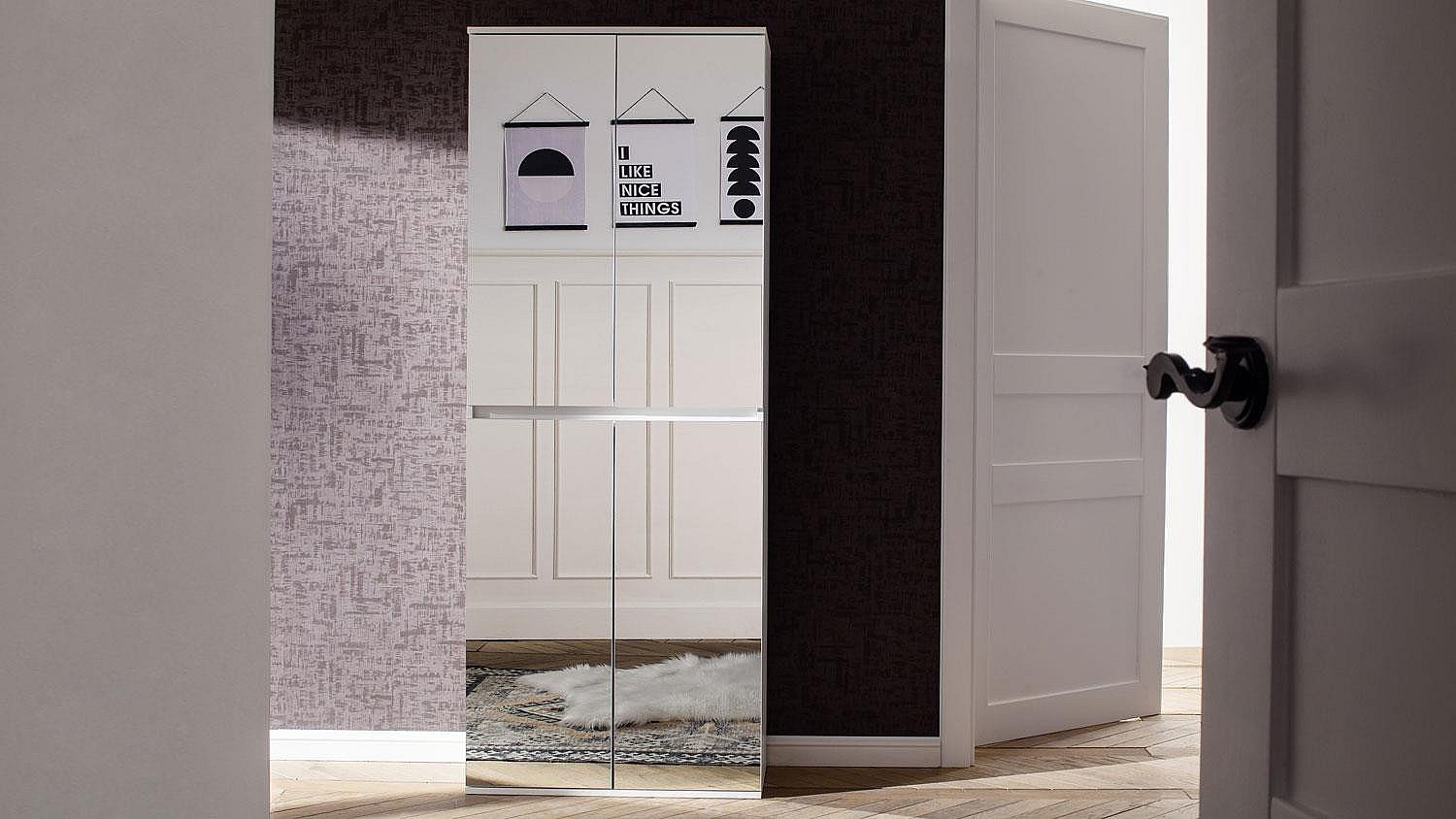 ROMA 80 | Pequeño armario dormitorio oficina | Armario multifunción | 2 puertas | Espejo | 2 cajones | Armario de almacenamiento | Vestidor