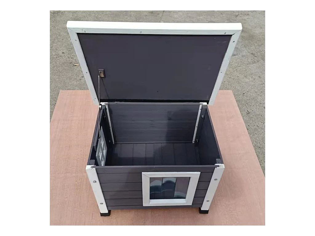 Casa de exterior para gato madera gris y blanco 57x45x43 cm