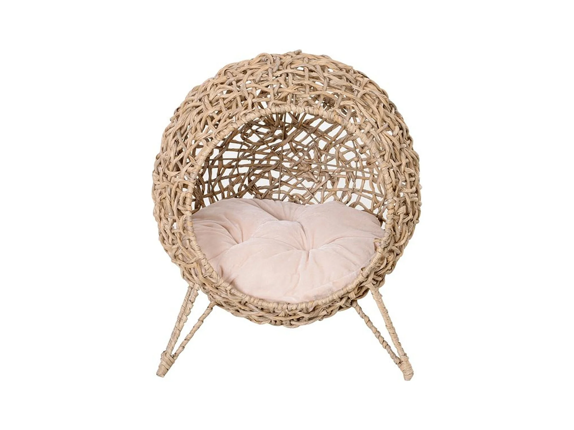 Casa de gato de ratán madera natural 52x58 cm PawHut