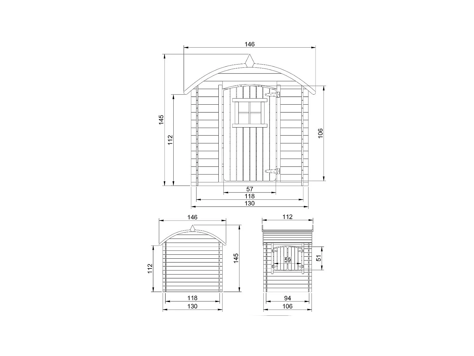 Casa de madera para niños SIN SUELO - L112xL146xA152 cm/ 1,1m2- TIMBELA M550-1
