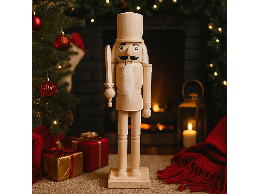 Cascanueces de Navidad Rebecca Mobili Sencha 38x8x10 Madera Marrón Blanco Clásico
