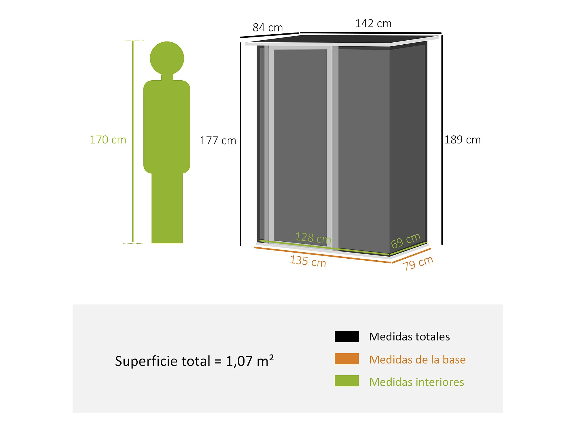 Cobertizo de jardín gris 142x84x189 cm Outsunny