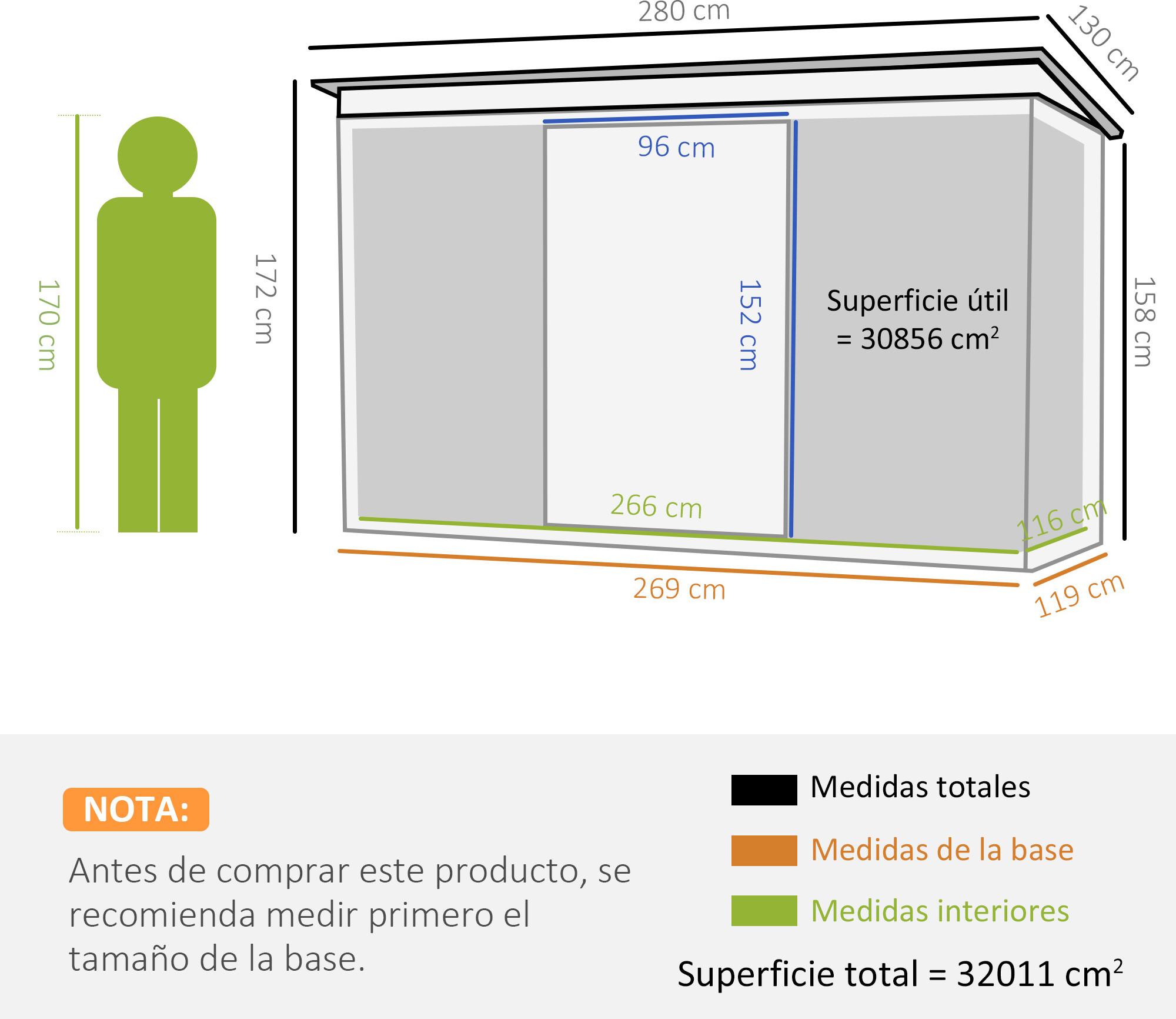 Caseta de jardín gris oscuro 280x130x172 cm Outsunny