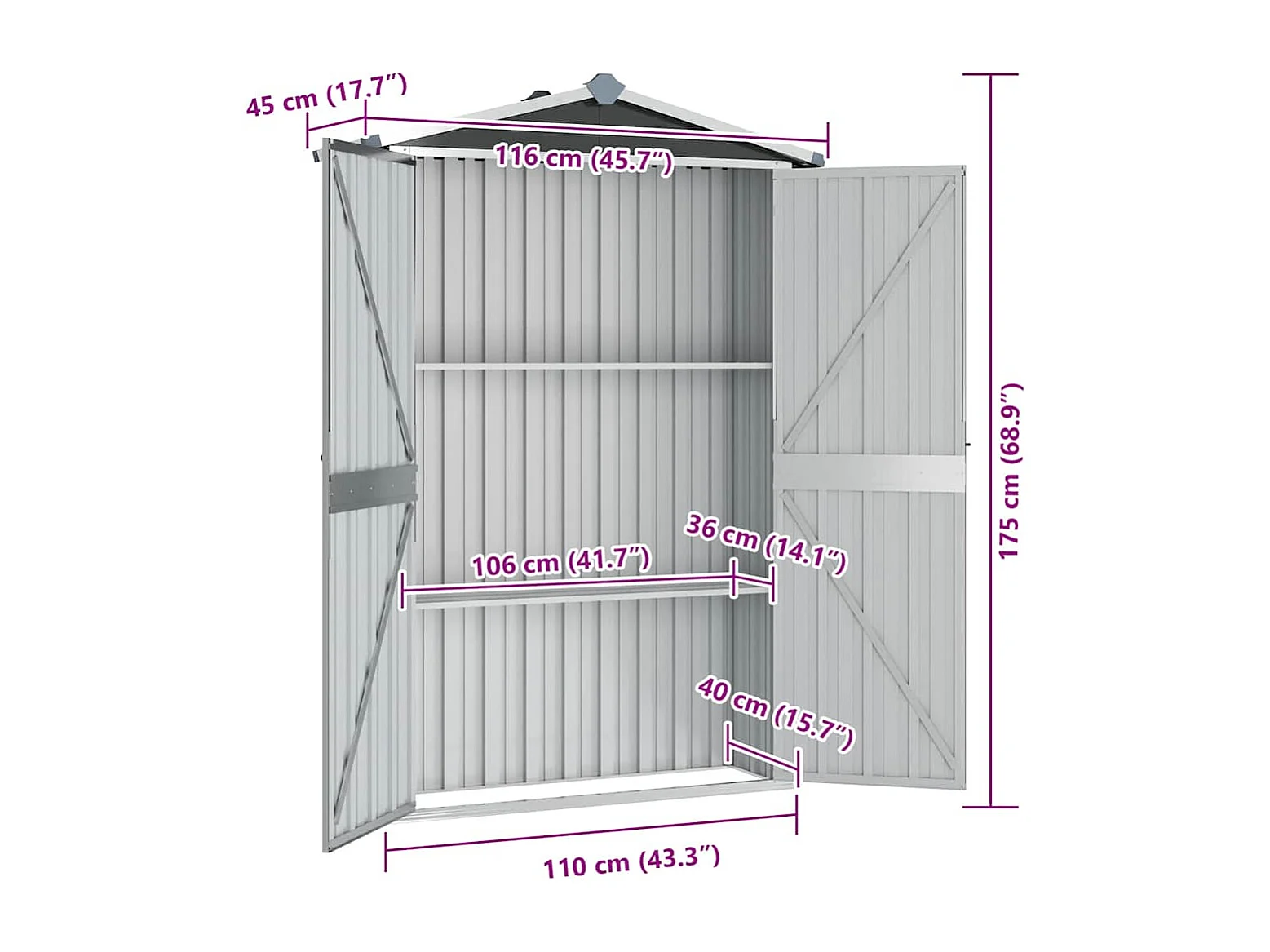 Caseta de jardín Antracita 116x45x175 cm Acero galvanizado