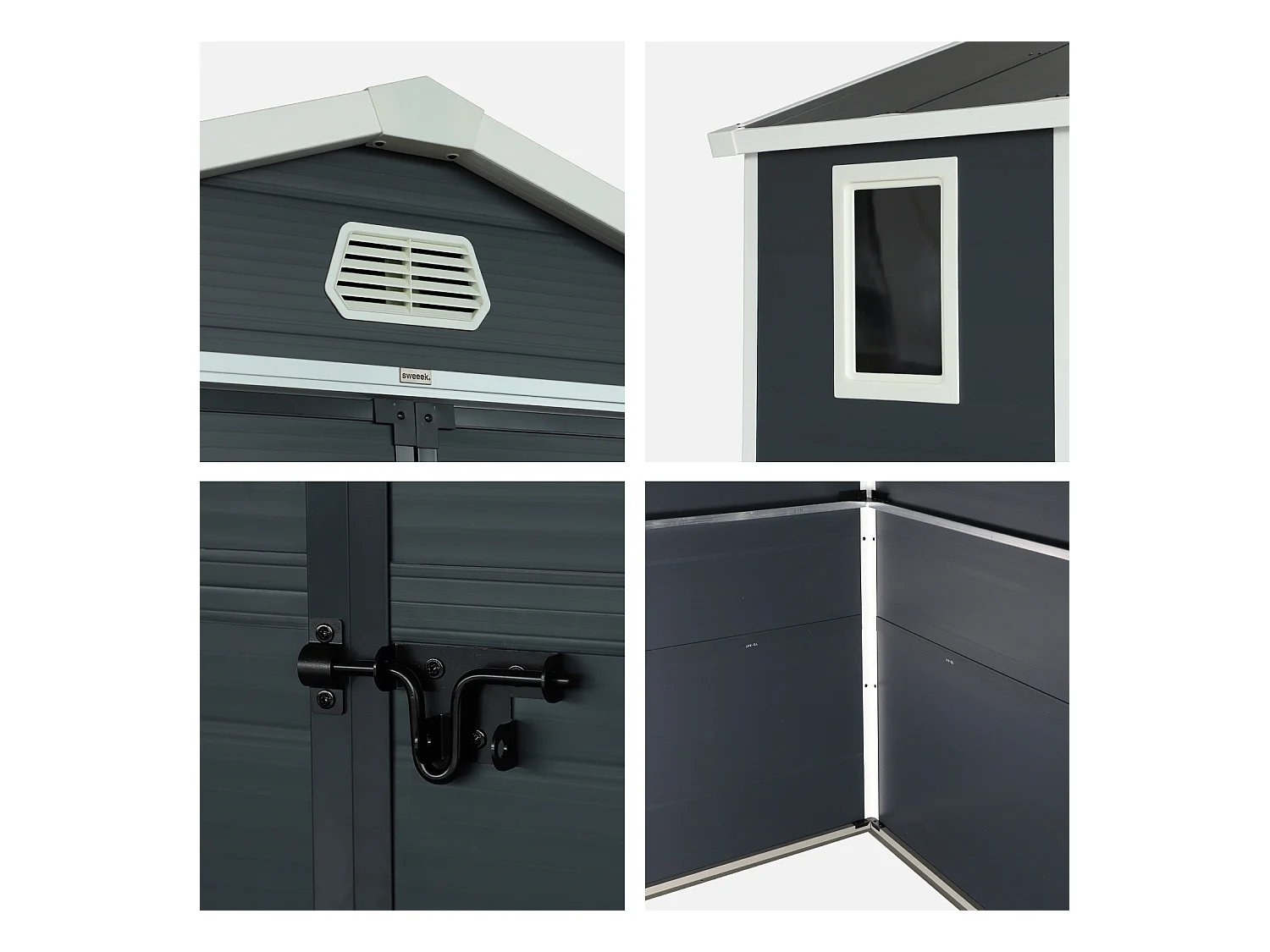 Caseta de jardín de plástico, estructura de aluminio, 3.65m² antracita