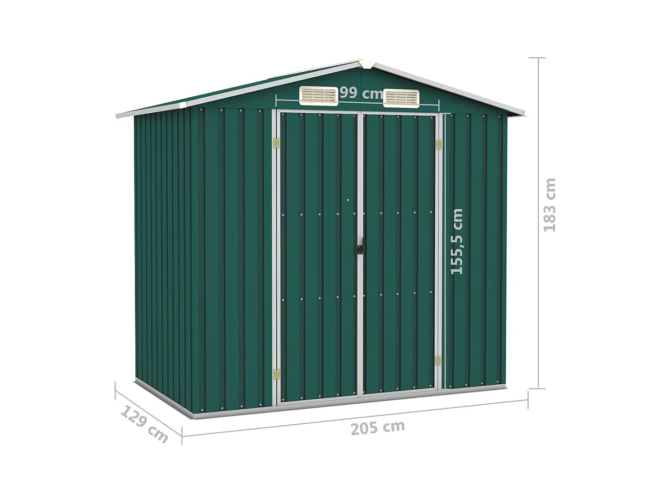 Caseta de jardín verde 205x129x183 cm Acero galvanizado