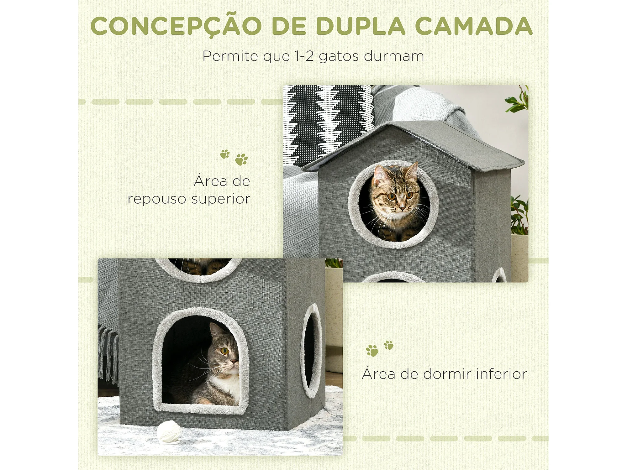 Caseta para gatos Soft PawHut 1 puerta + 2 ventanas + 2 cojines gris 59,5x42x46 cm