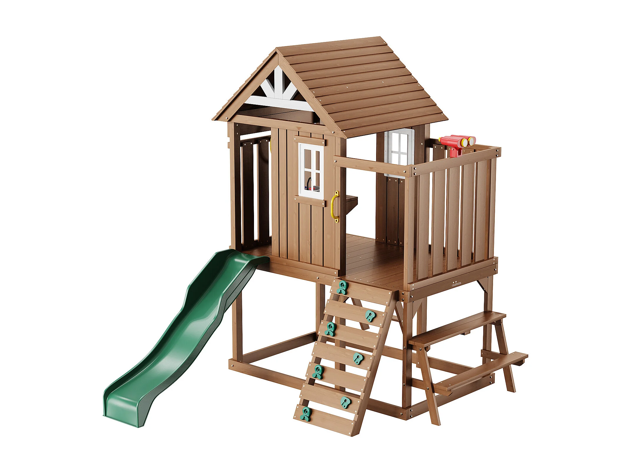 Casita de Juegos para Niños, SucceBuy - Casa de Juegos de Madera para Exteriores con Tobogán, Escalera y Ventana, Casa de Juegos de Jardín