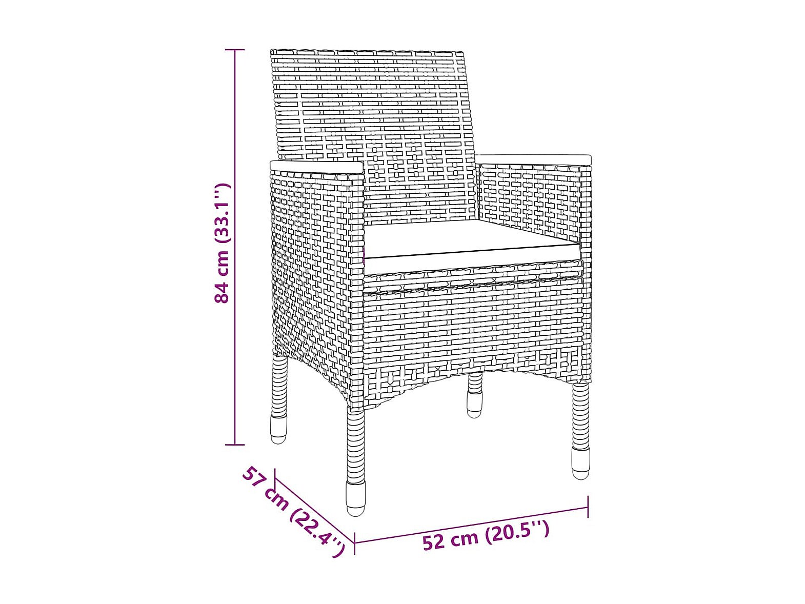Germain Juego de comedor para jardín 3 piezas ratán sintético negro
