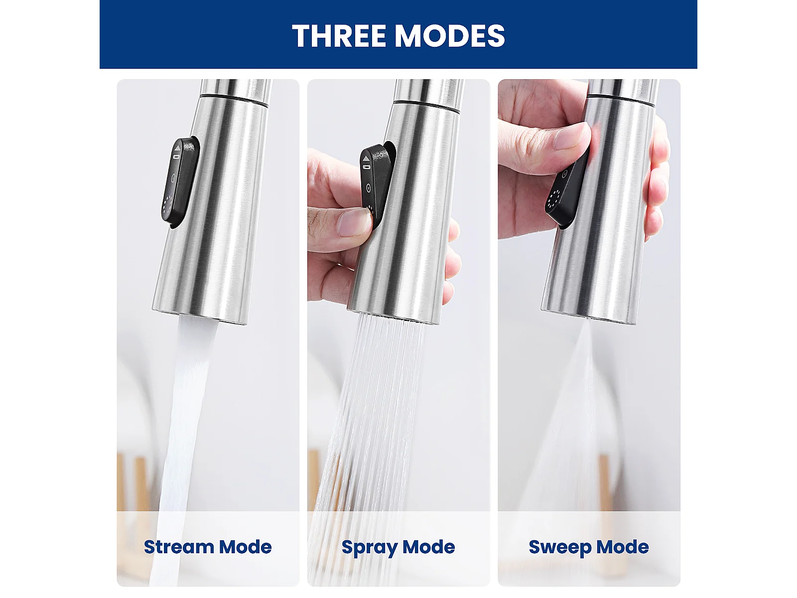Cecipa max Mezclador de cocina con ducha extraíble, 2 modos de chorro, grifo para fregadero giratorio 360 en acero inoxidable cepillado, modelo EU