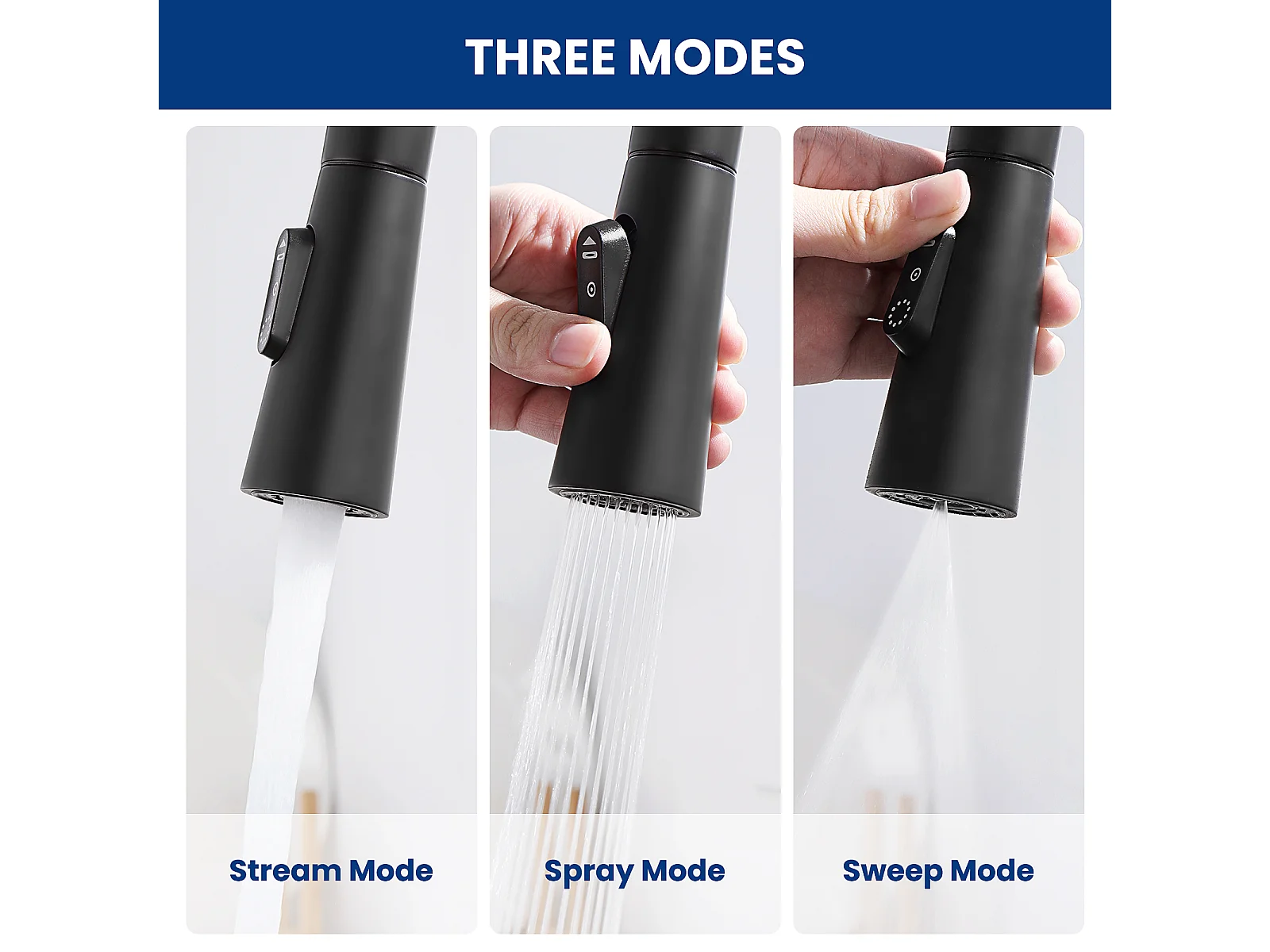 Mezclador Cocina con Ducha Extraíble Negro mate Rotativo a 360 °eN Acero Inoxidable Grifo Cocina Fregadero 2 Funciones Mezclador Cocina