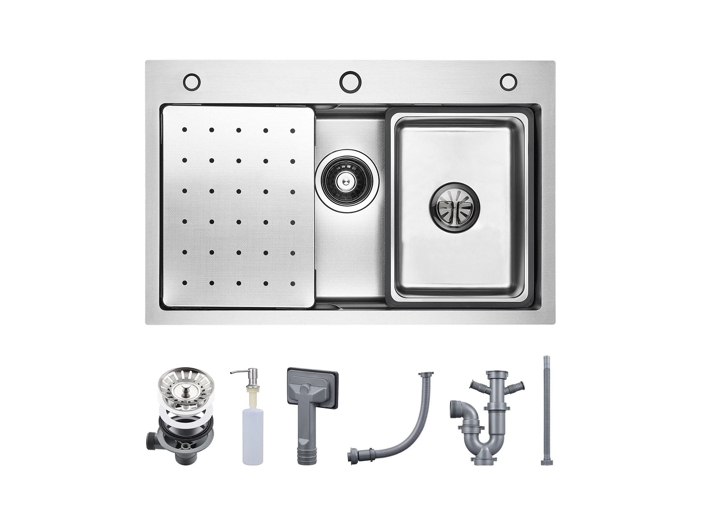Cecipa max Fregadero de Acero Inoxidable 70×45×21,5CM con Escurridor, Lavabo y Dispensador de Jabón + Mezclador de Cocina con Ducha Extraíble con 2 Tipos de Chorro