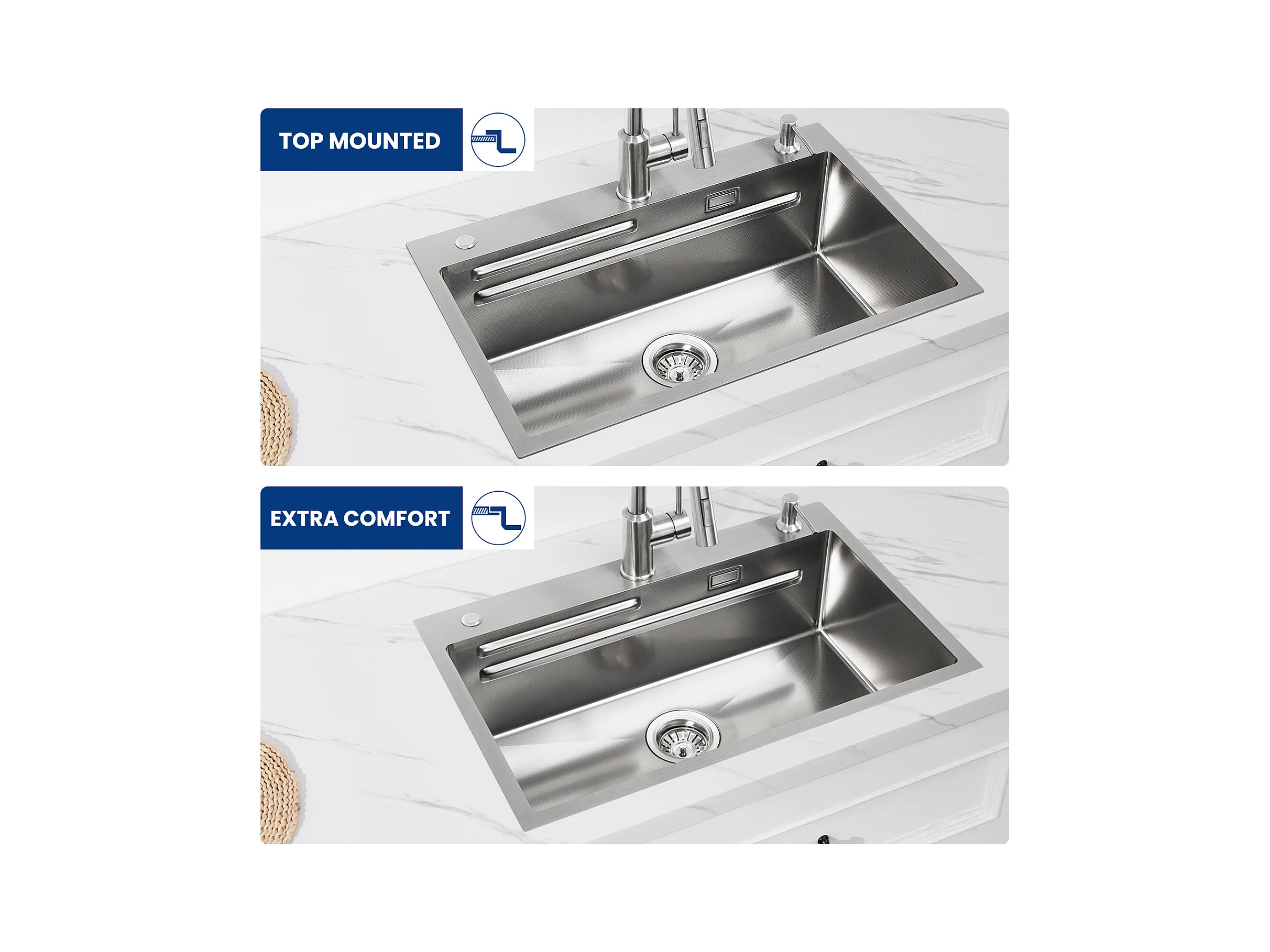 Cecipa max Fregadero de Acero Inoxidable 70×45×21,5CM con Escurridor, Lavabo y Dispensador de Jabón + Grifo Monomando con Ducha Extraíble 2 Modos de Salida de Agua