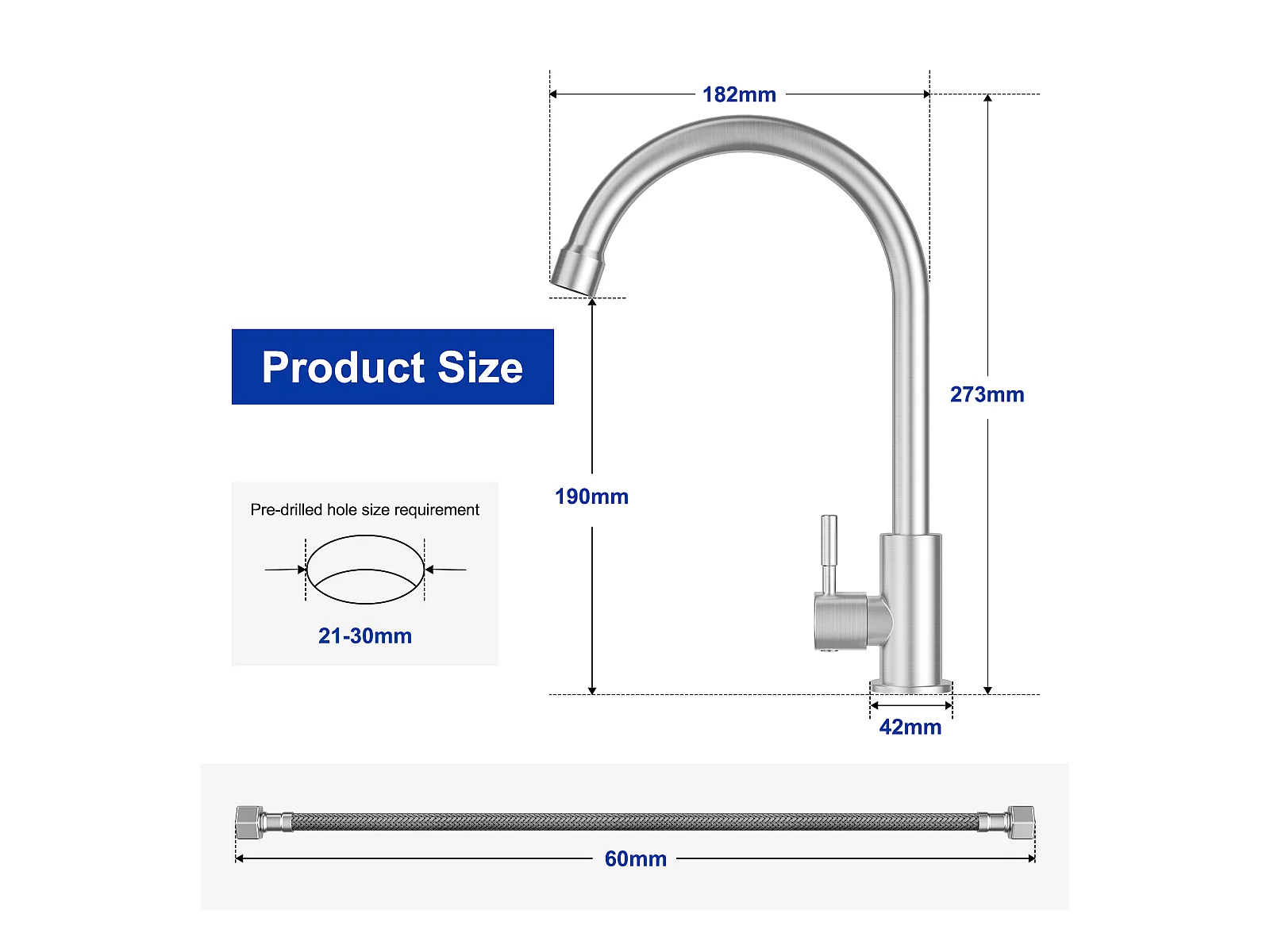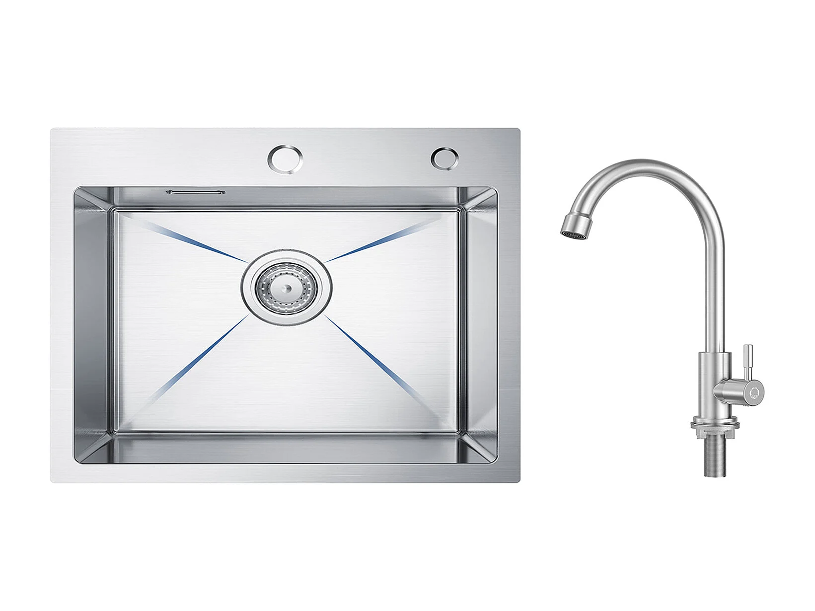 CECIPA MAX Fregadero de Cocina 1 Seno 50×45×18.5CM Fregadero de Acero Inoxidable Cepillado + Grifo de Cocina de Agua Fría, Cepillado