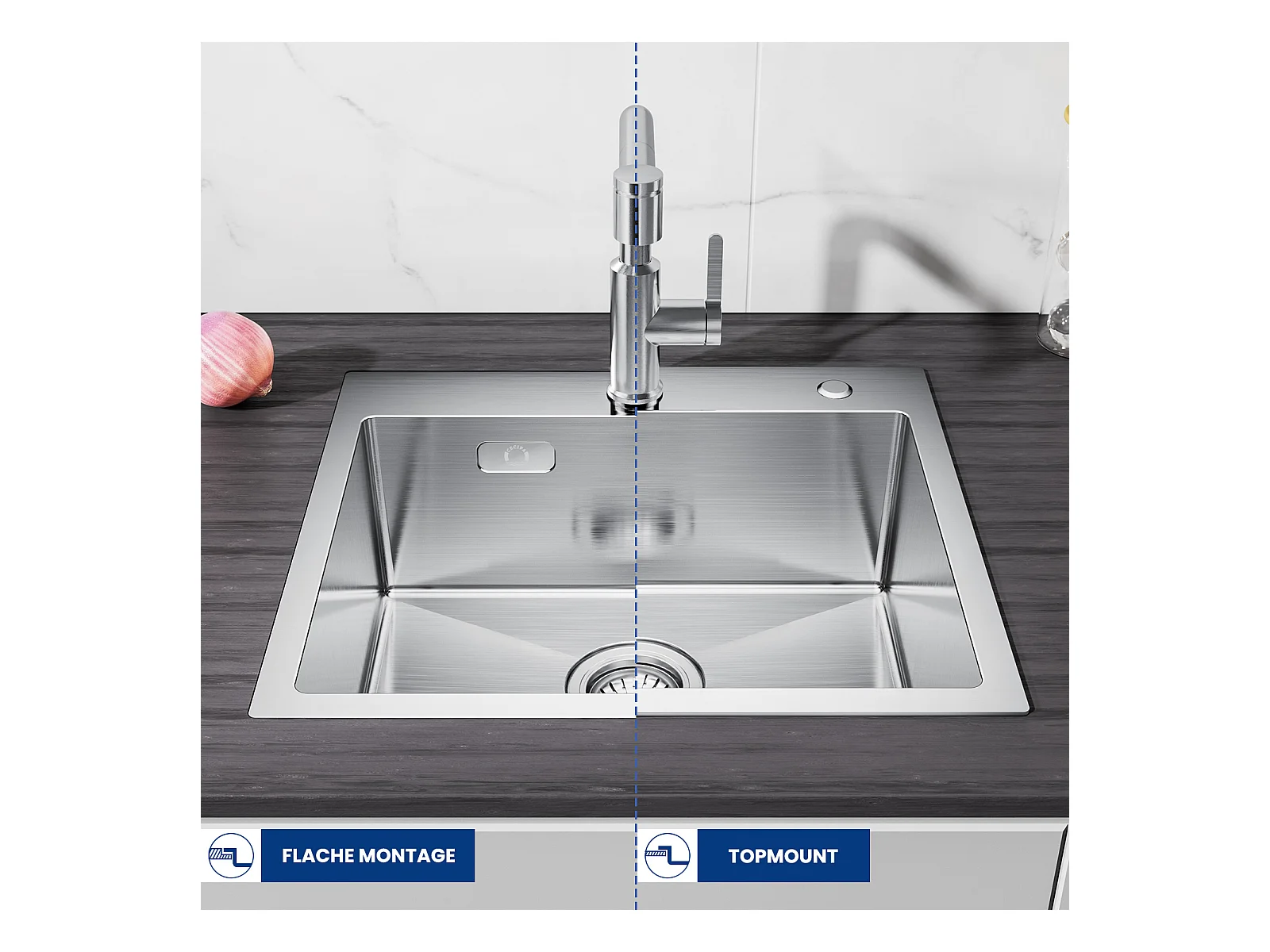 CECIPA MAX Fregadero de Cocina 1 Seno 50×45×18,5CM Fregadero de Acero Inoxidable Cepillado + Mezclador de Cocina para Sistema de Ósmosis