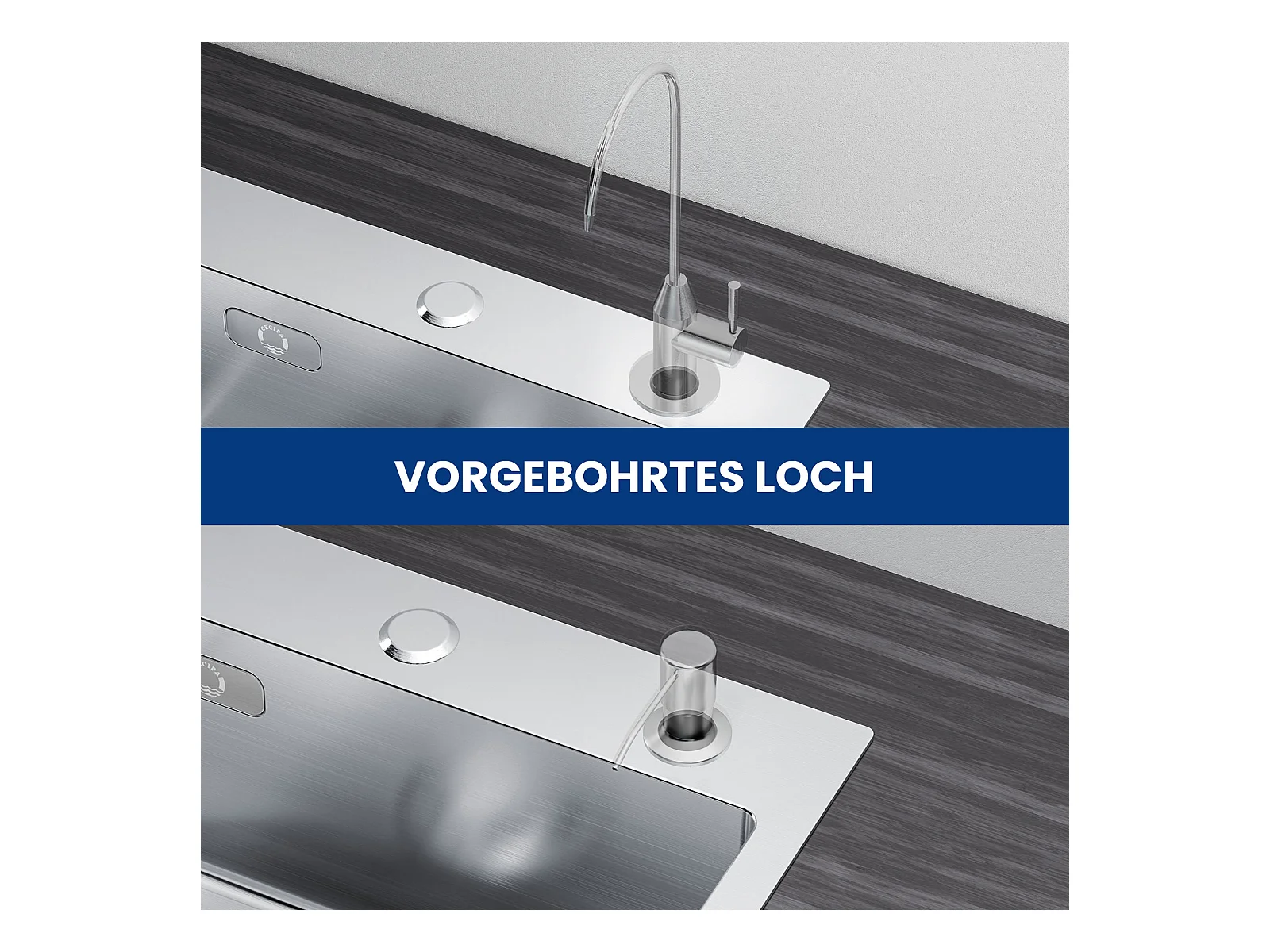Cecipa max Fregadero de Cocina Cepillado 2 en 1 + Dispensador de Jabón de Cocina con Recipiente de 300ML