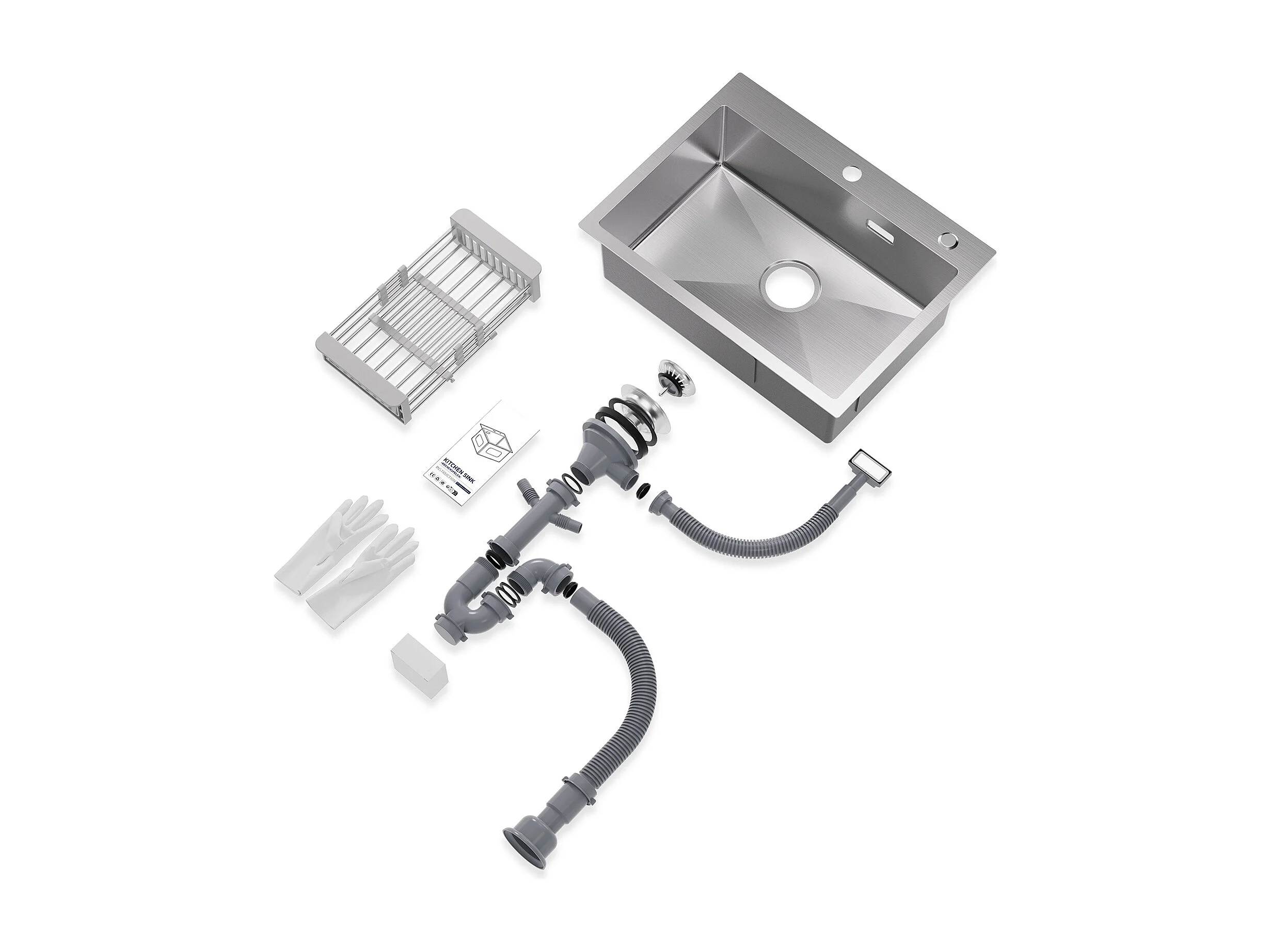Fregadero de cocina de 1 tazón, fregadero de acero inoxidable cepillado de 60×45×18CM con cesta de drenaje + mezclador de fregadero giratorio de 360° cepillado