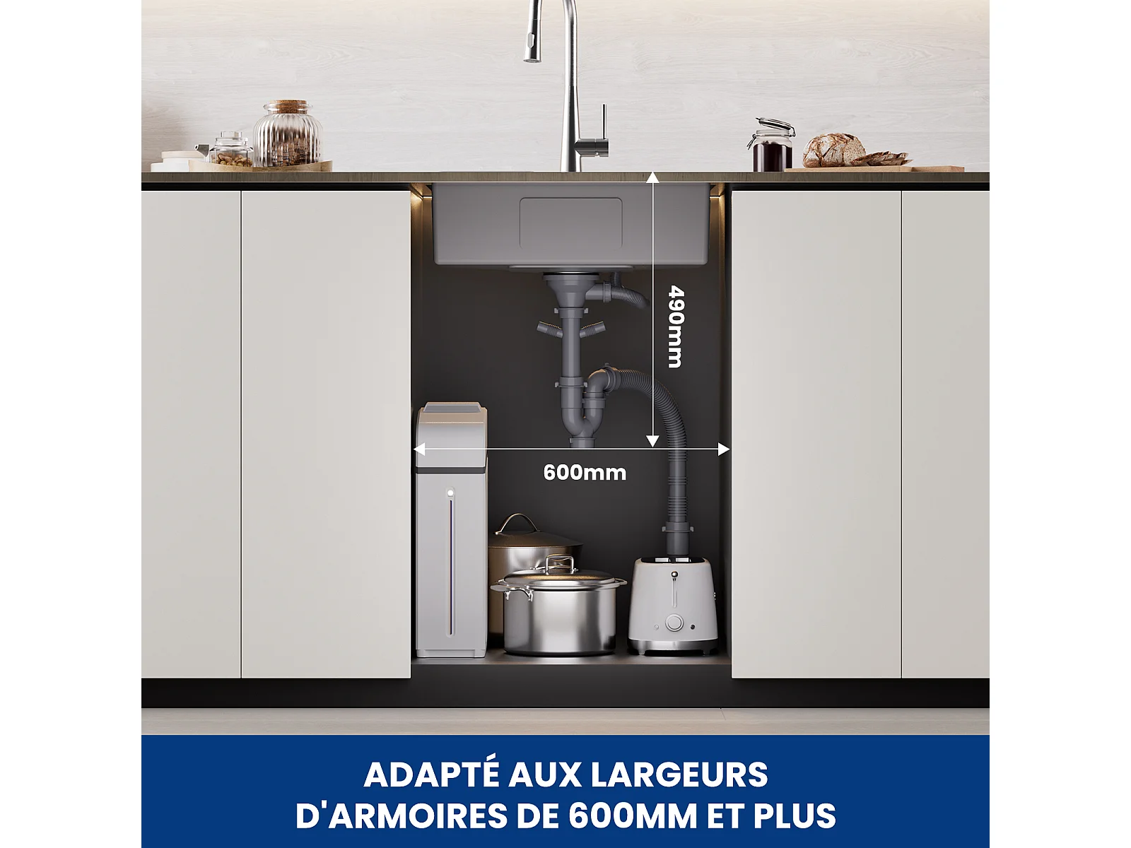 Cecipa max Fregadero de 1 seno de acero inoxidable cepillado 60×45×18 cm - Fregadero de 1 seno con escurridor - Fregadero de cocina de gran capacidad, modelo UE