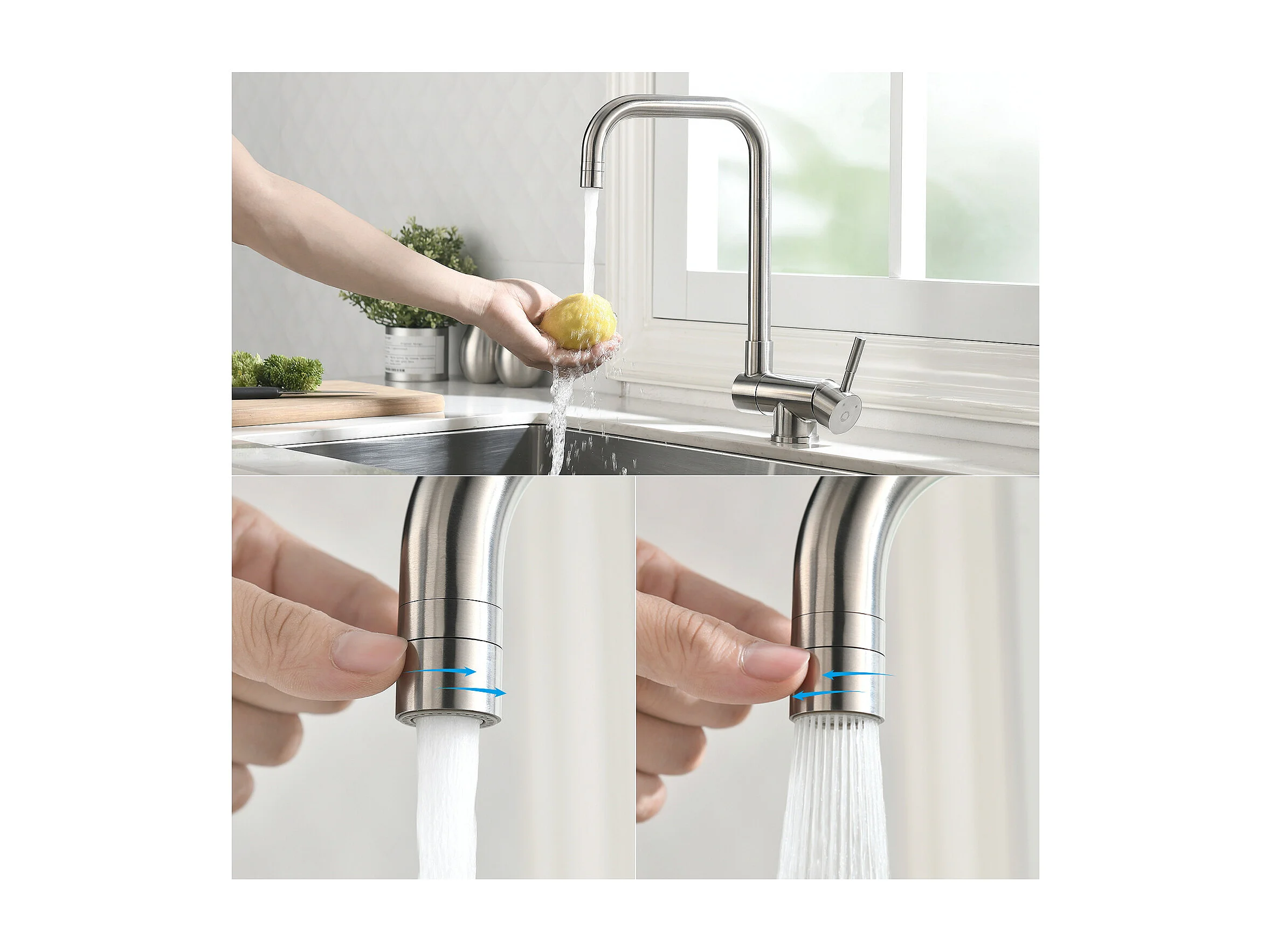 Mezclador Cocina con Ducha Extraíble Negro mate Rotativo a 360 °eN Acero Inoxidable Grifo Cocina Fregadero 2 Funciones Mezclador Cocina