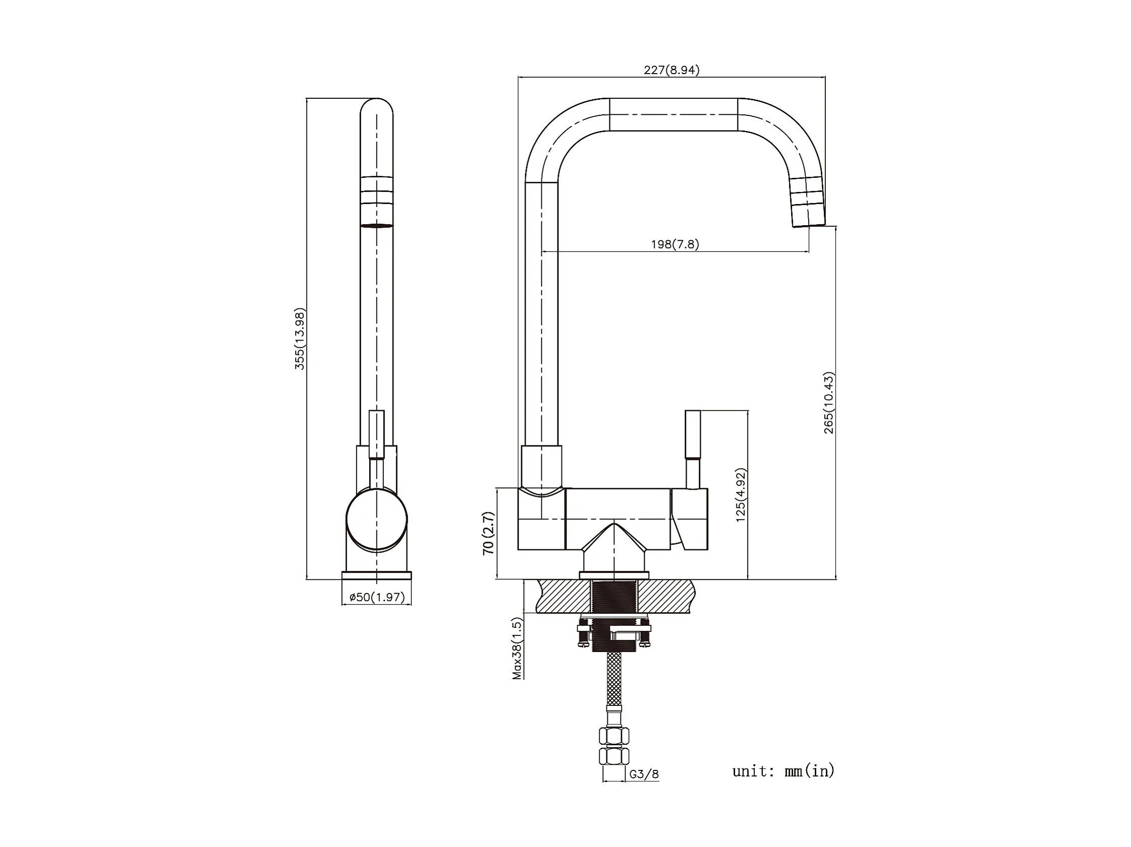 Cecipa max Fregadero de Cocina de Cuarzo y Resina 40x45 cm Fregadero de Cuarzo 1 Seno Negro + Grifo de Cocina Abatible Mezclador de Fregadero Abatible Cepillado