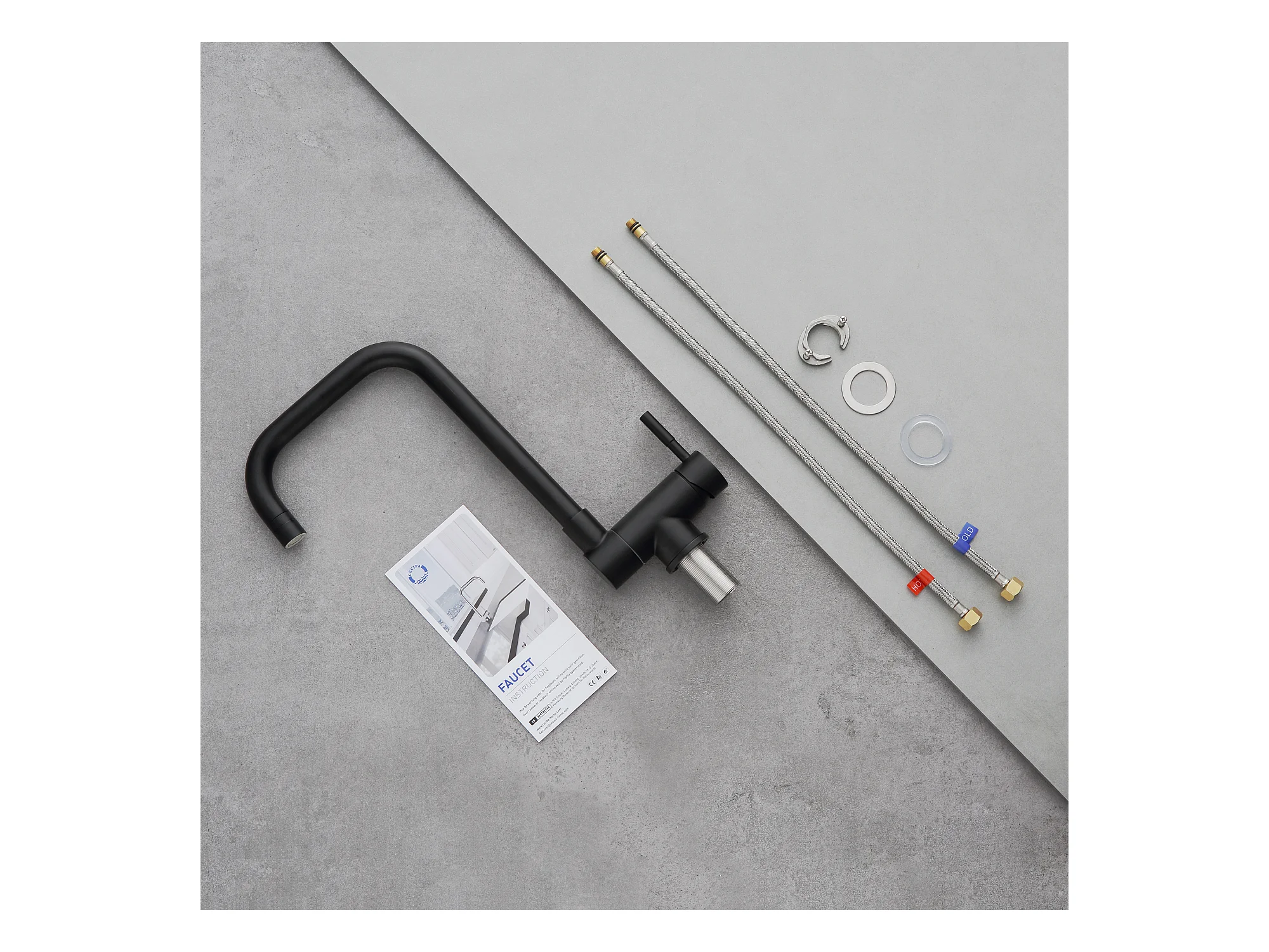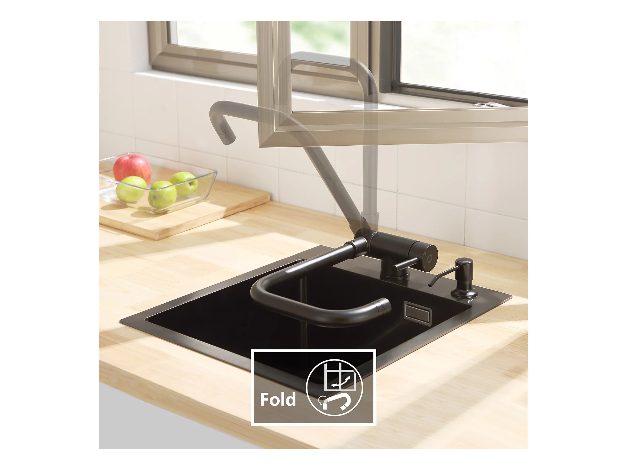 Lonheo Max Mezclador de cocinaE Plegable Negro Giratorio de 360°, ,con Mango Plegable Contra Ventana, Acero Inoxidable, Agua Caliente/Fría,Modelo UE