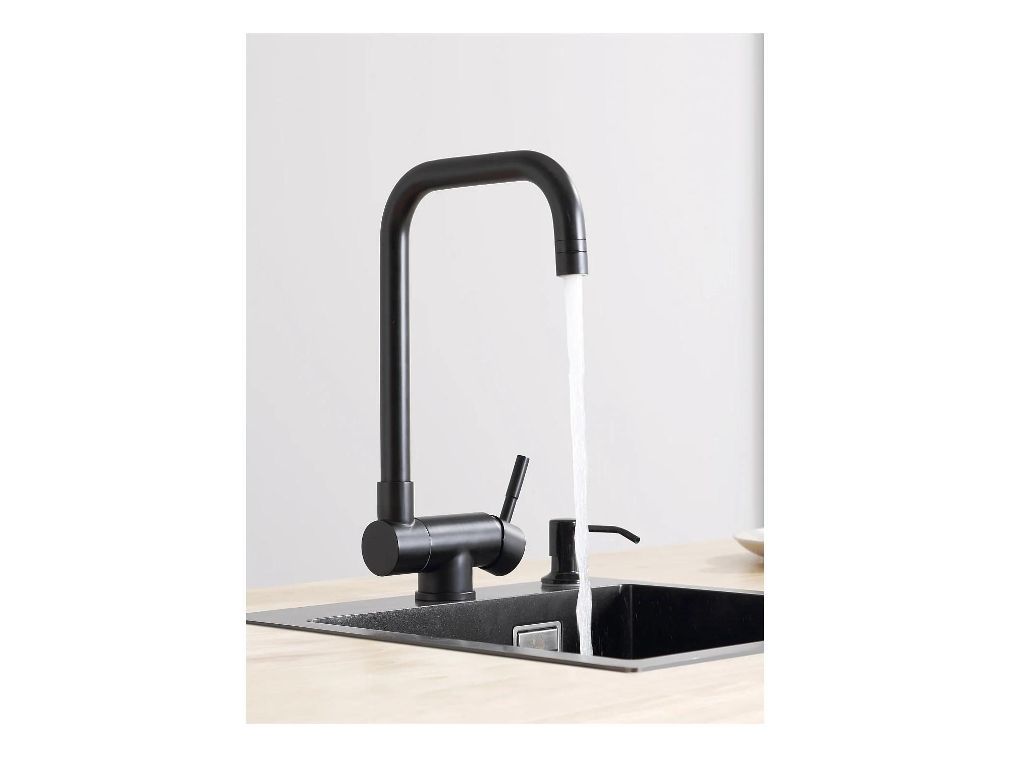 Fregadero de 1 cubeta de cuarzo y resina, 3 opciones de montaje, 40*44*20cm + Mezclador de cocina plegable negro