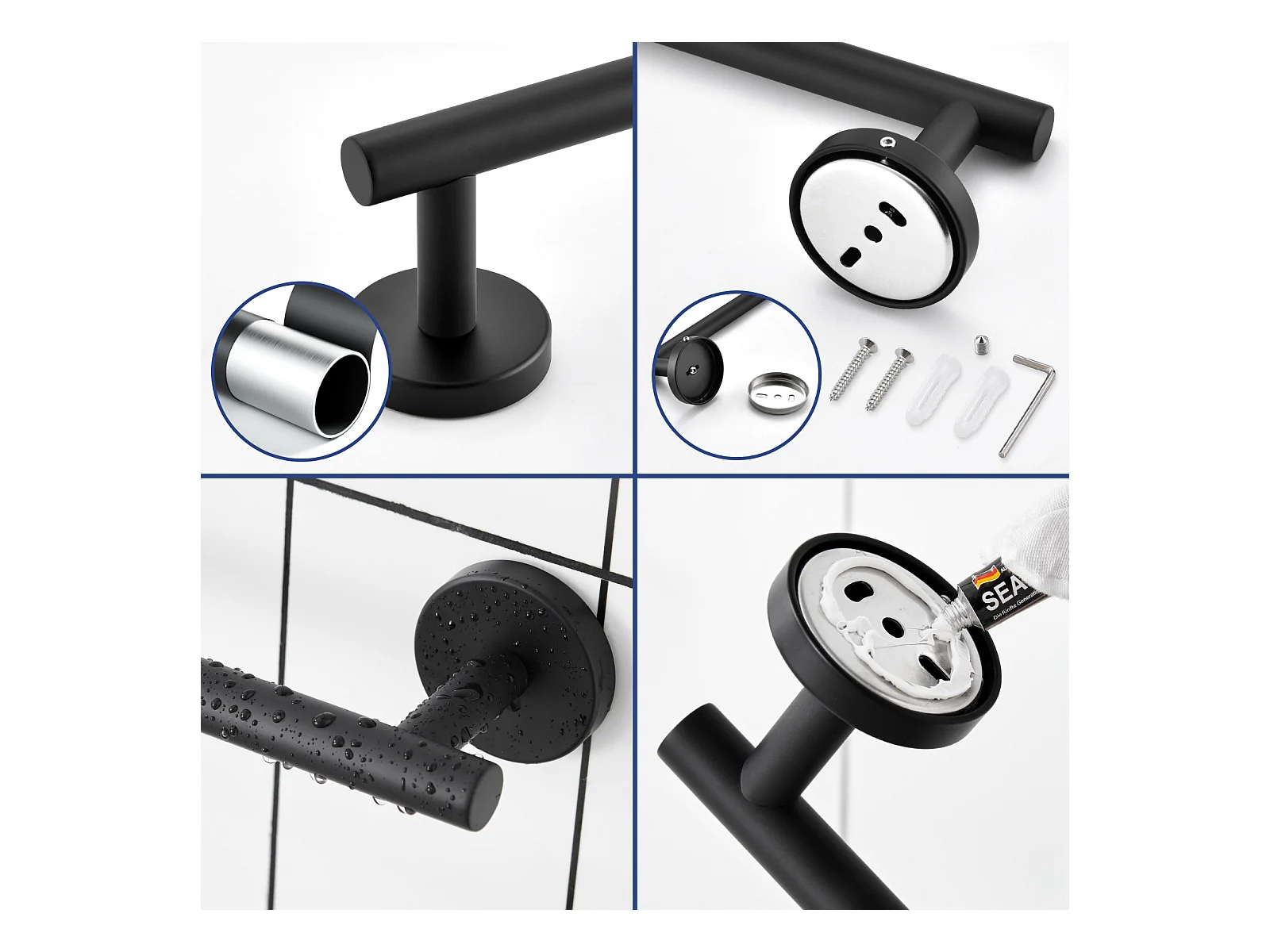 Toallero negro multifuncional de acero inoxidable 304, toallero unipolar adecuado para baño/servilleta sanitaria/cocina