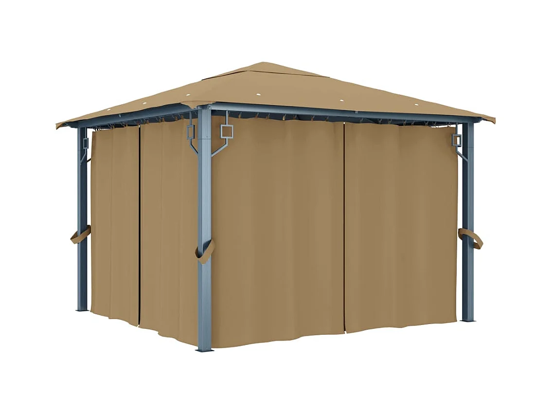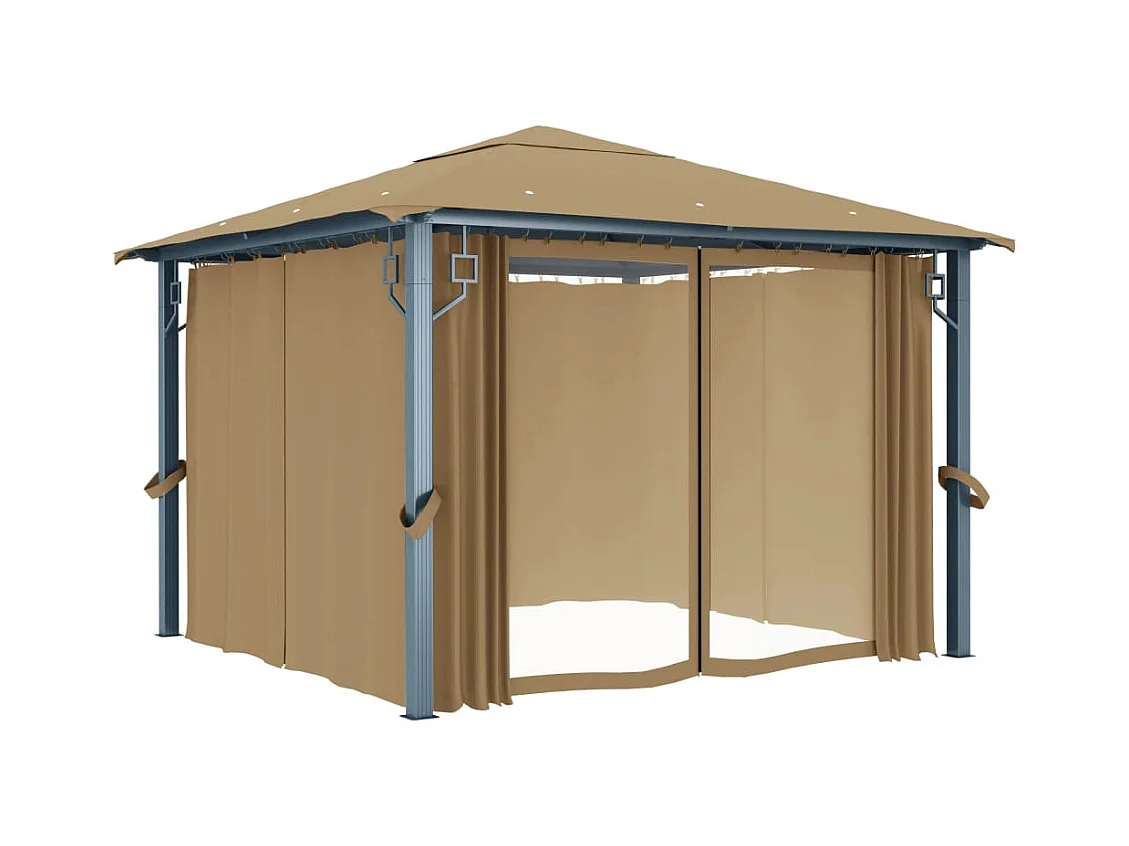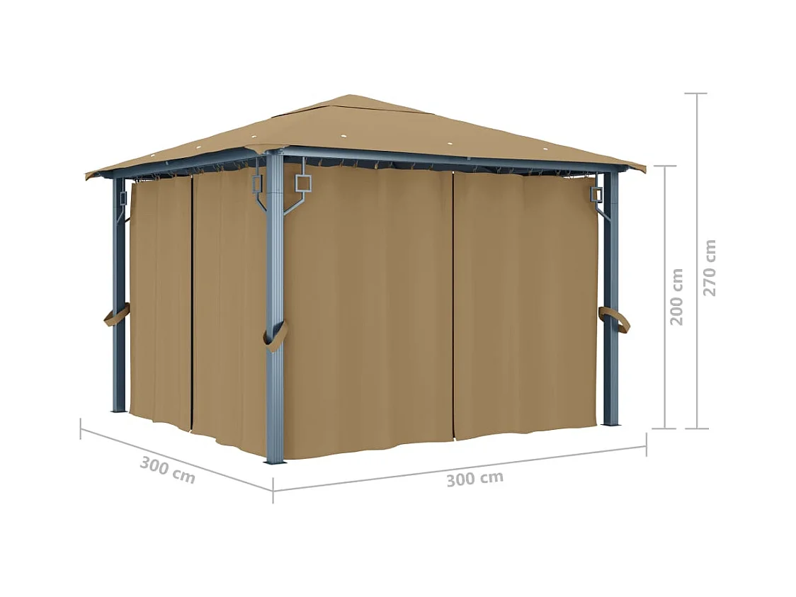 Cenador con cortina gris taupe aluminio 300x300 cm
