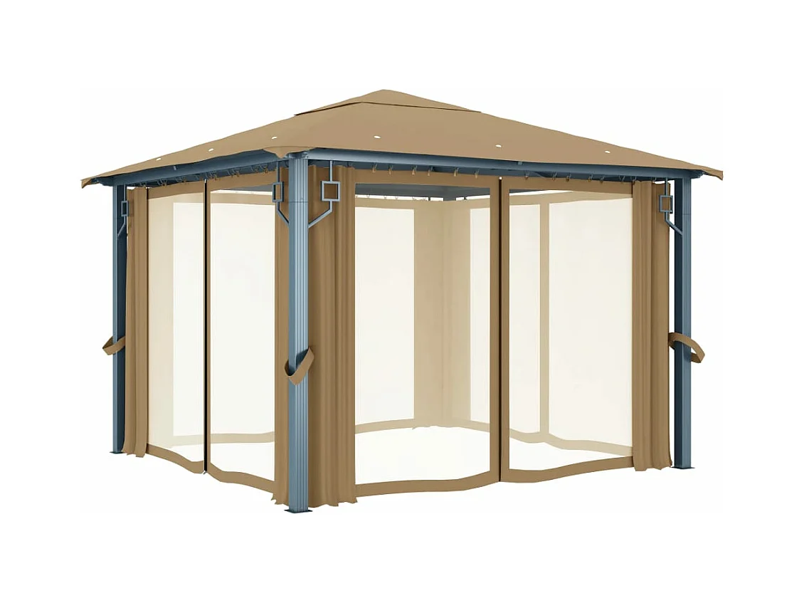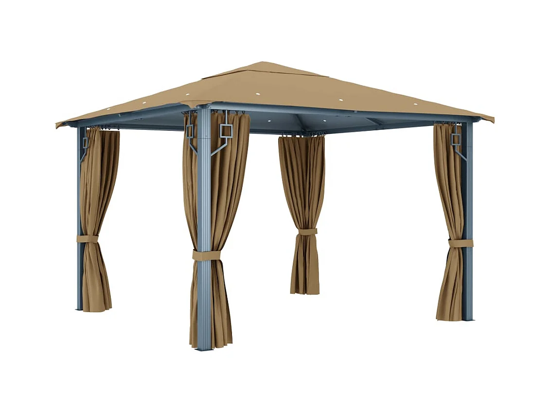 Cenador con cortina y tira de luz aluminio taupé 300x300 cm