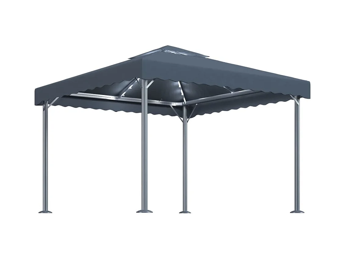 Cenador con guirnalda de luces LED 300x300 cm Antracita